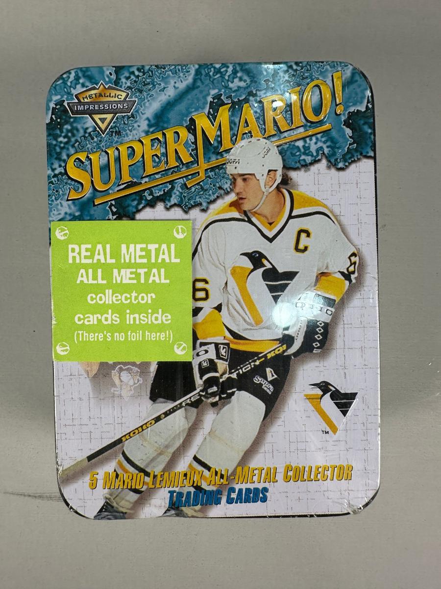 1. 1996 Metallic Impressions Super Mario Lemieux 5 Metal Card Set gift tin SEALED