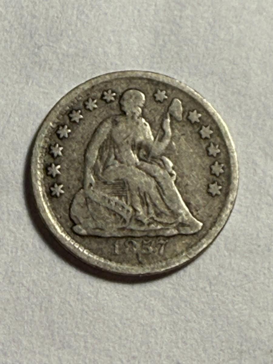1857 VG/FINE CONDITION LIBERTY SEATED HALF DIME SILVER TYPE COIN AS PICTURED. $5 DOMESTIC SHIPPING.