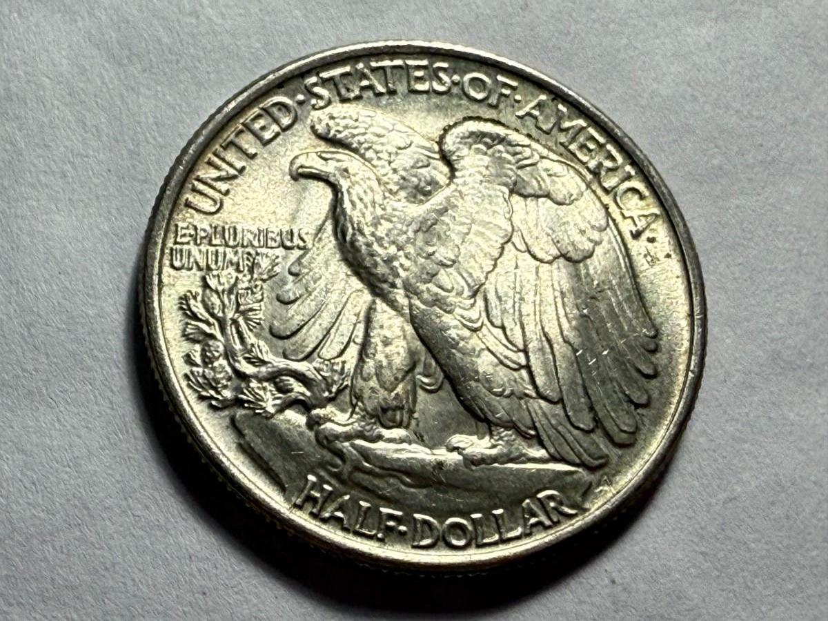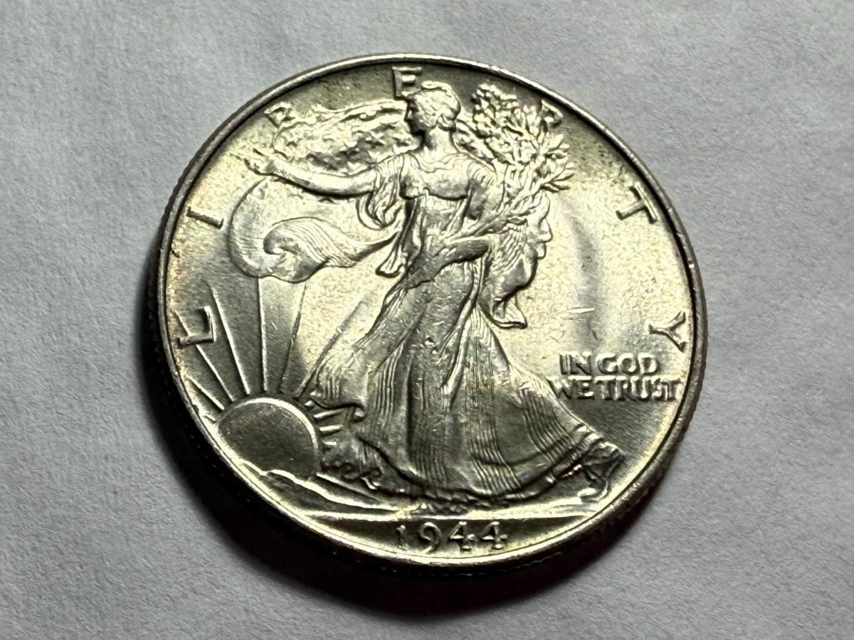 1944-P UNCIRCULATED/MS60 CONDITION SILVER WALKING LIBERTY HALF DOLLAR AS PICTURED. $5 DOMESTIC SHIPPING.