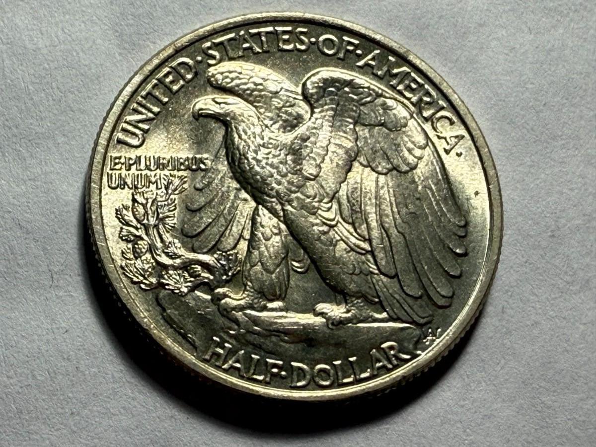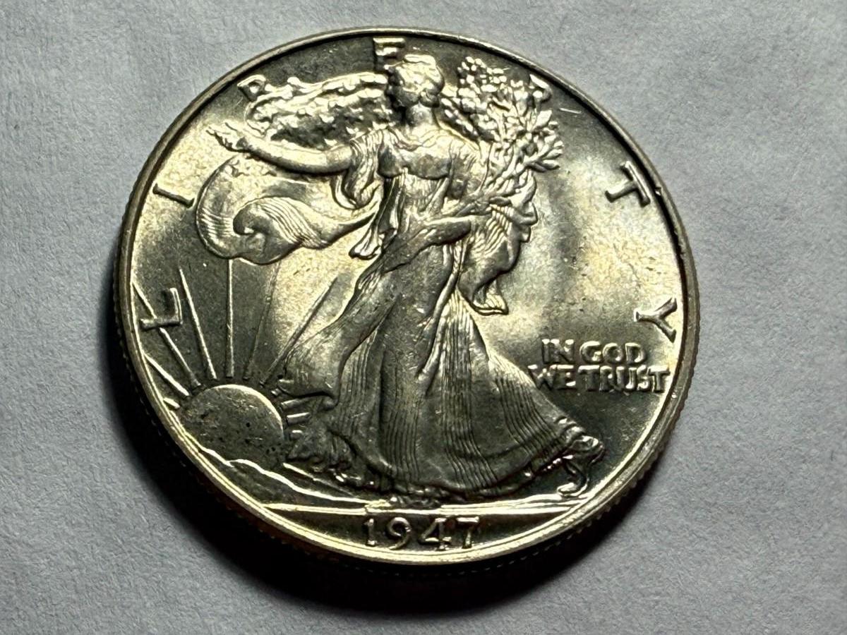 1947-P UNCIRCULATED CONDITION SILVER WALKING LIBERTY HALF DOLLAR AS PICTURED. $5 DOMESTIC SHIPPING.