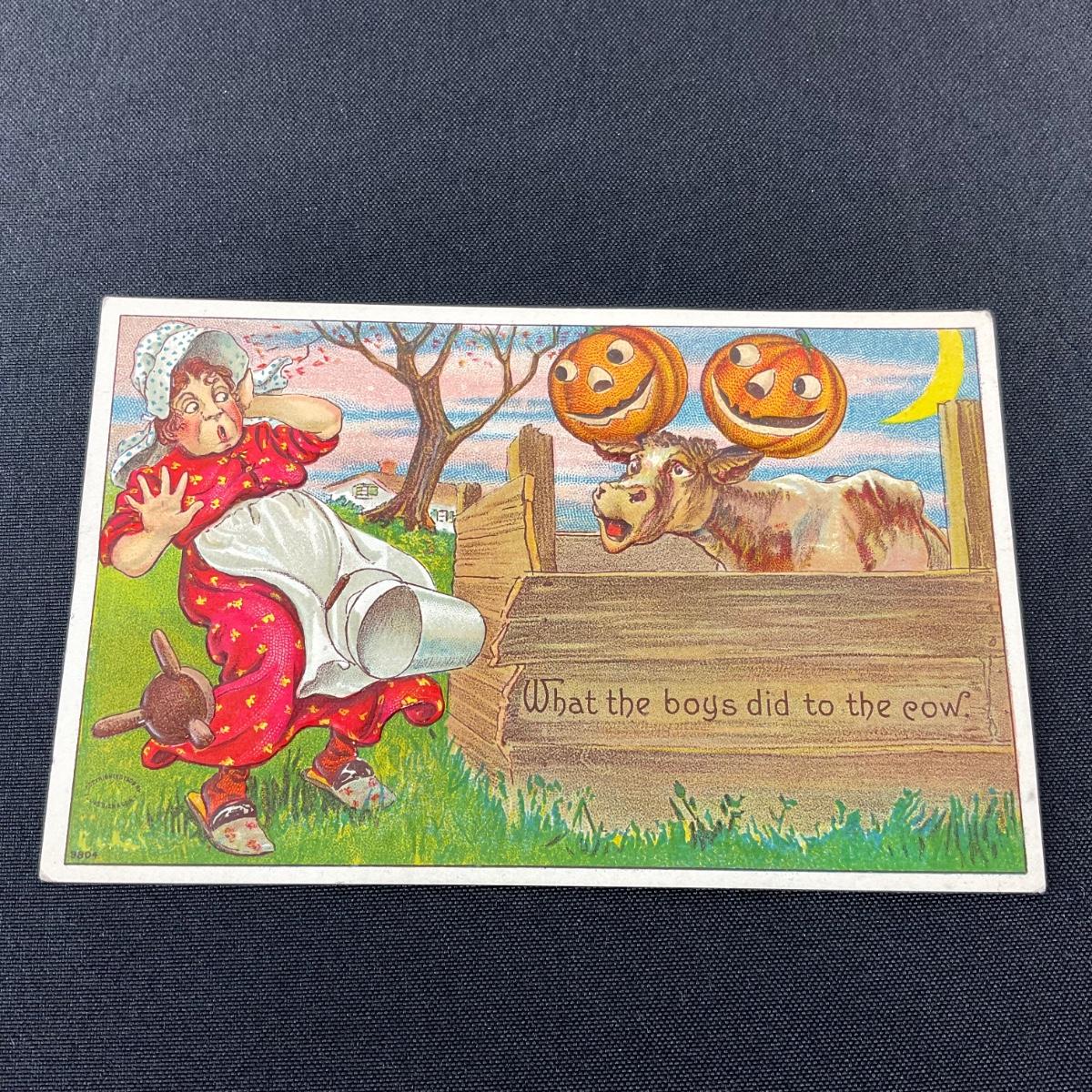 -7- POSTCARD | “Halloween” “What The Boys Did To The Cow” Postcard