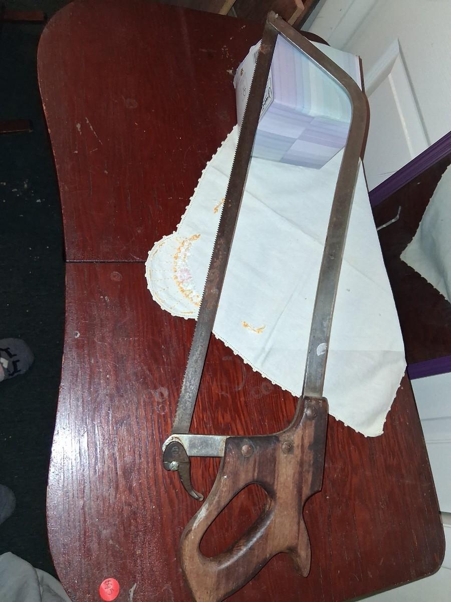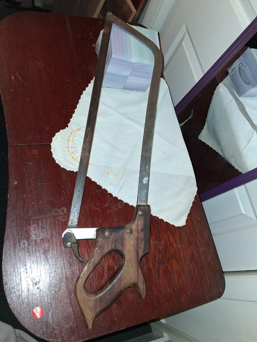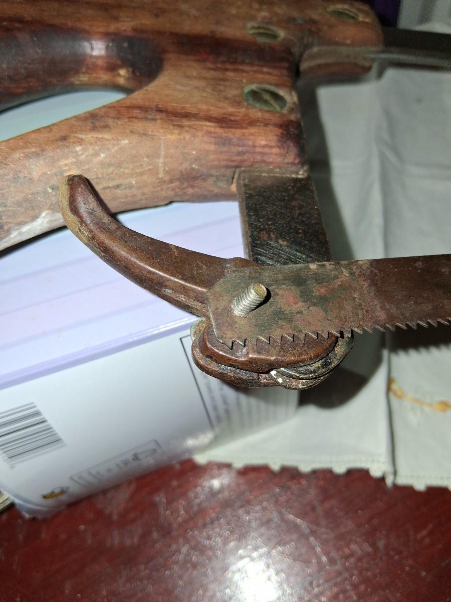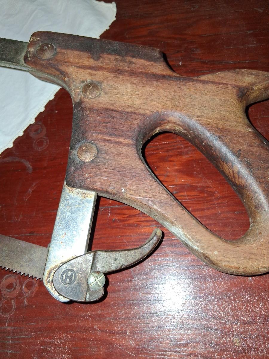 There is an H inside a circle on the Locking mechanism. Other than that I could fine no markings. In good condition with some surface rust & wear.