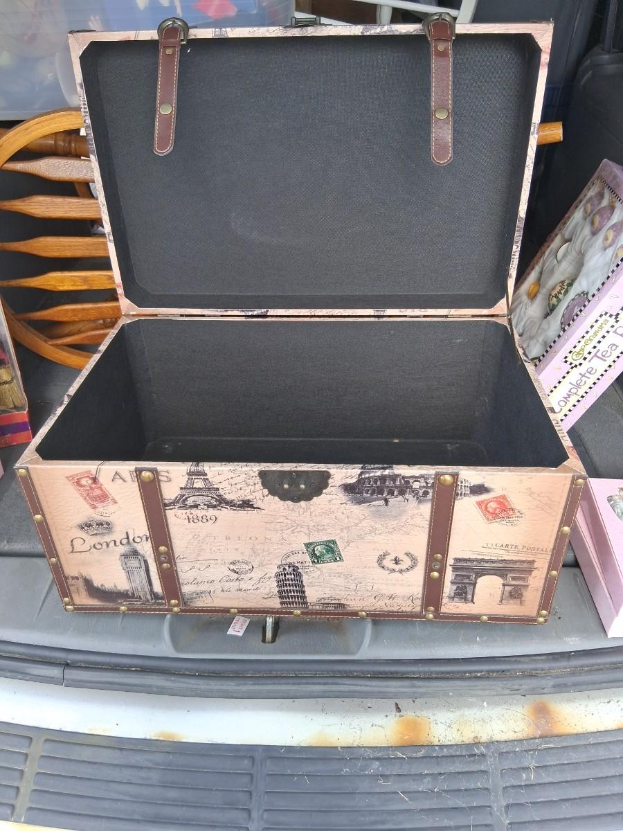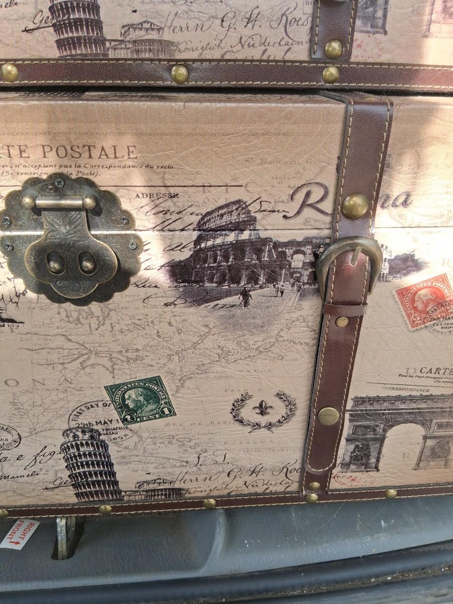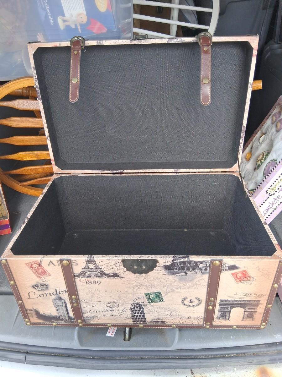 This pair is the Large Trunk & the Medium Trunk. Both with Leather? Strapping & European Postal Designs. Fully lined. Large Trunk still has the tag. $79.99 Medium tag is missing. $59.99 Large Trunk has 2 scratches on top from stacking.