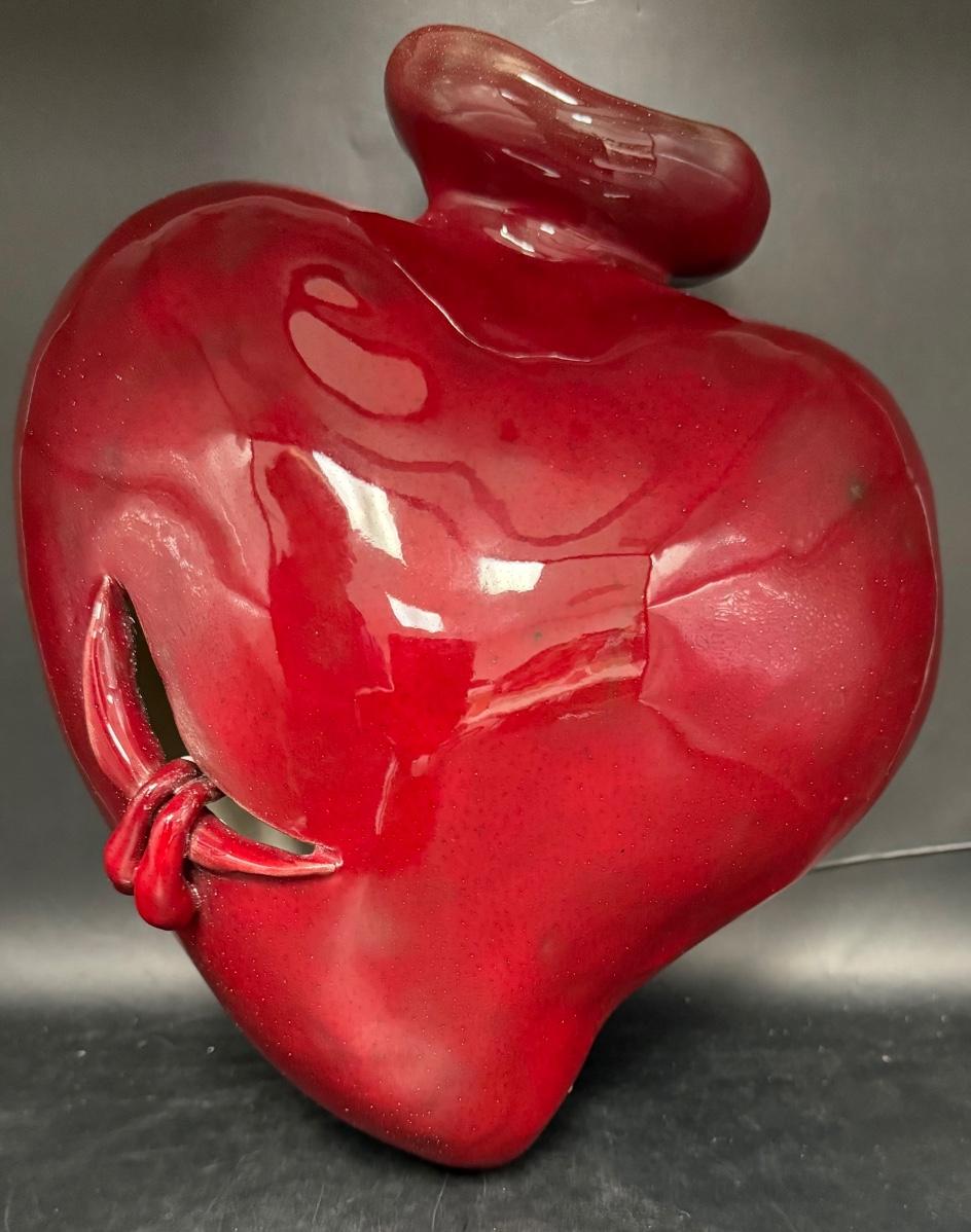 This piece is custom made with a crimson glaze. No obvious chips or cracks. Measurement: 10”L x 8.5”W. [BK]