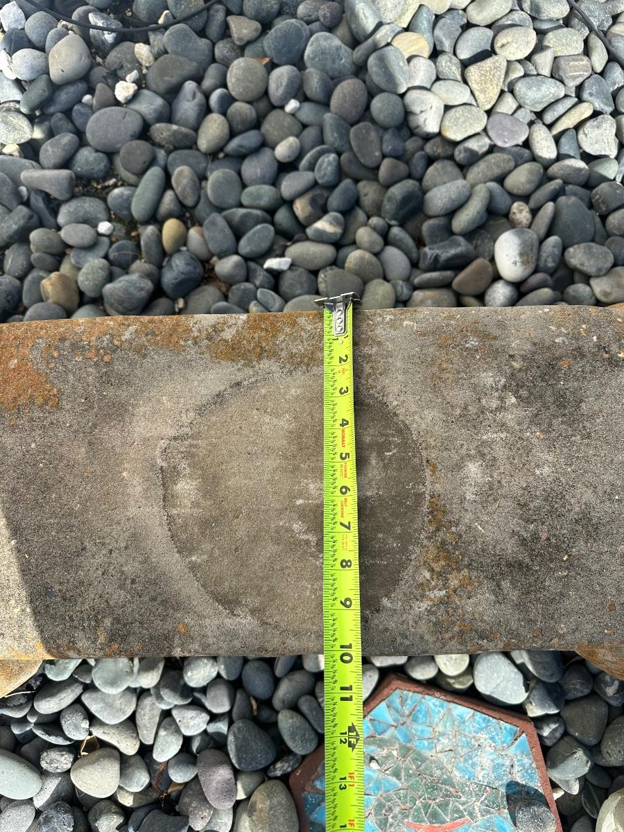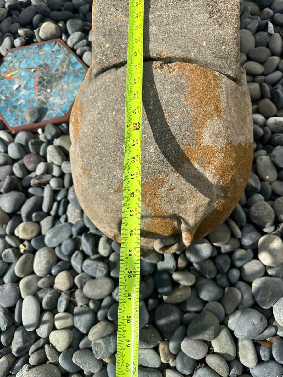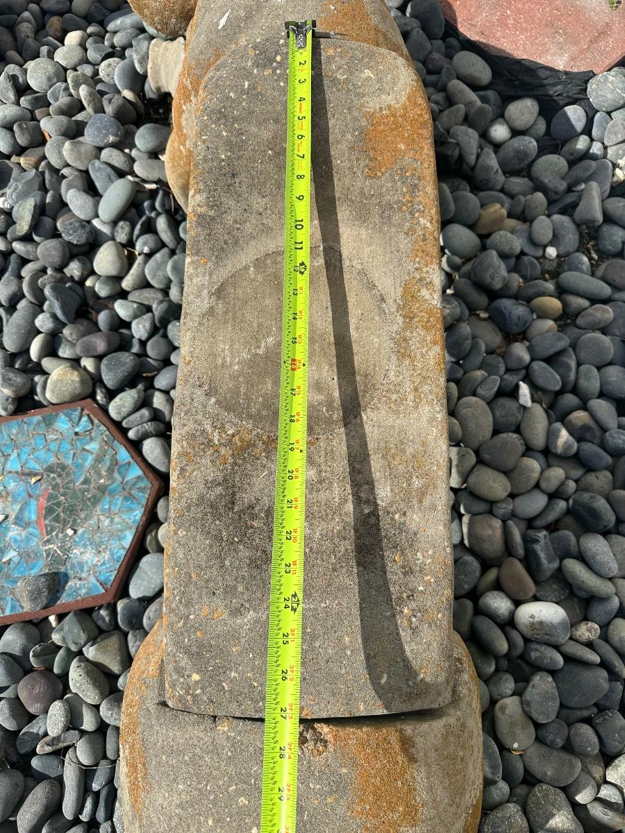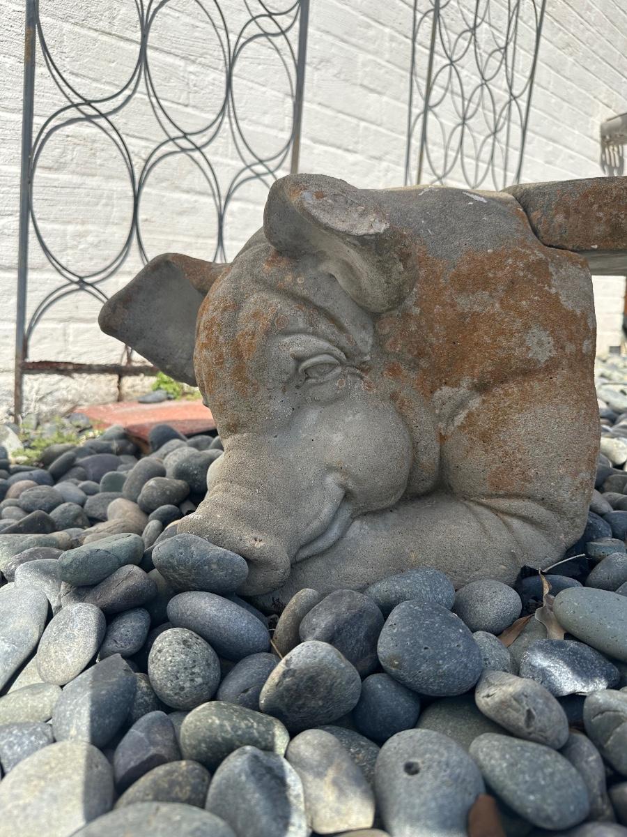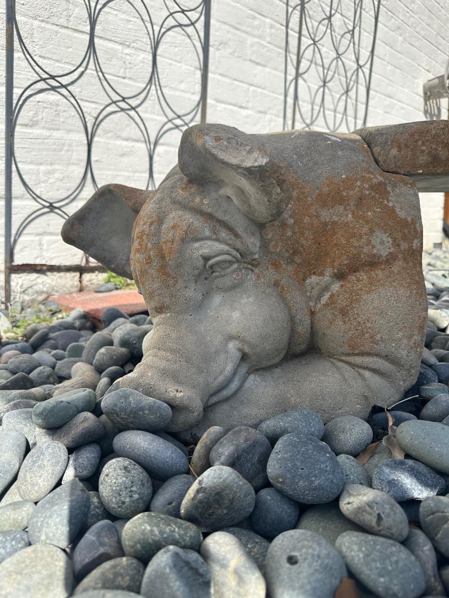 Shows typical outdoor wear and weathering. One ear is chipped (see photos). Structurally solid and suitable for continued outdoor use or decorative garden display.