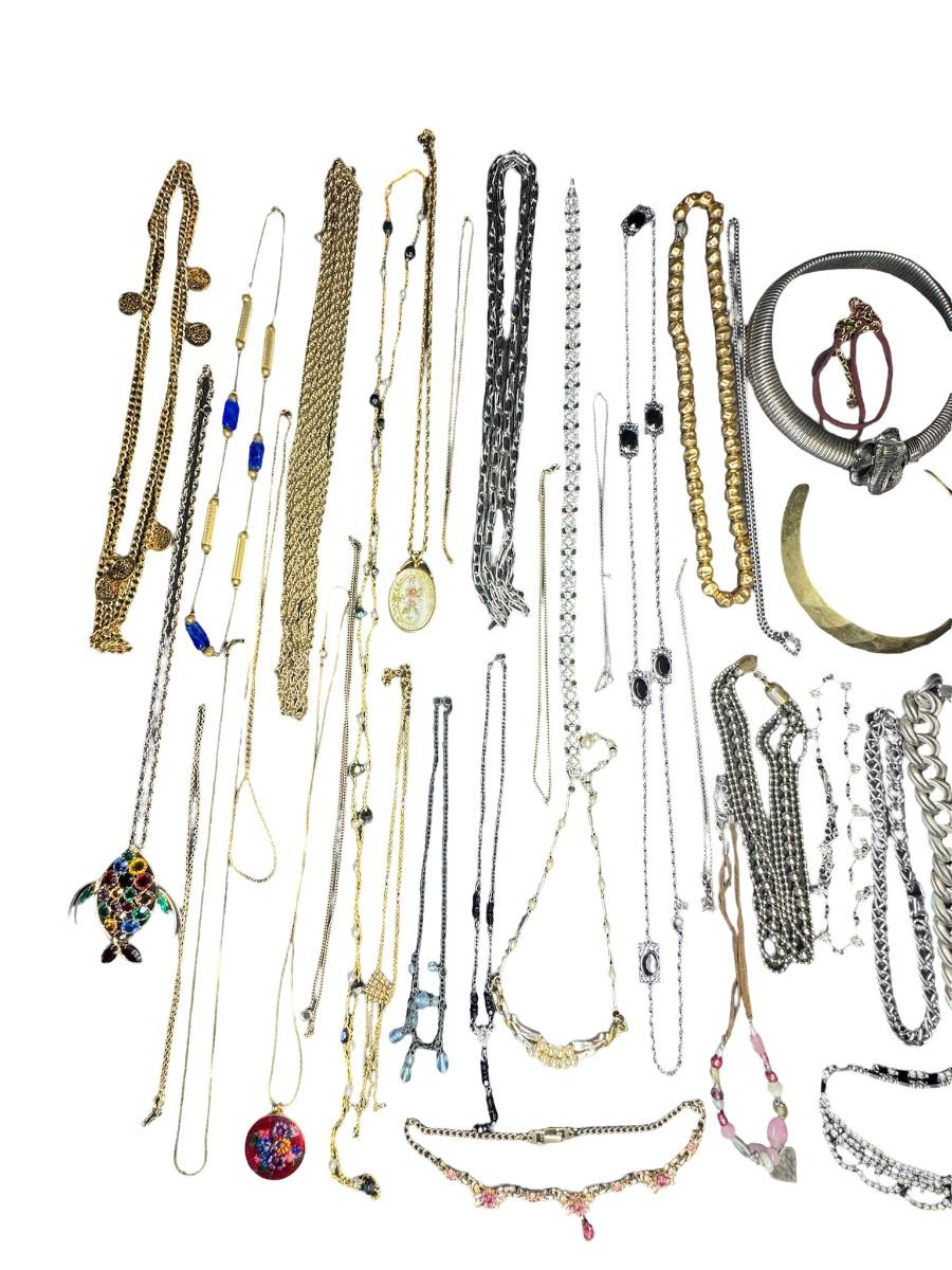 Includes gold tone, silver tone, beads, and more. Total of 60+ pieces. [BK]
