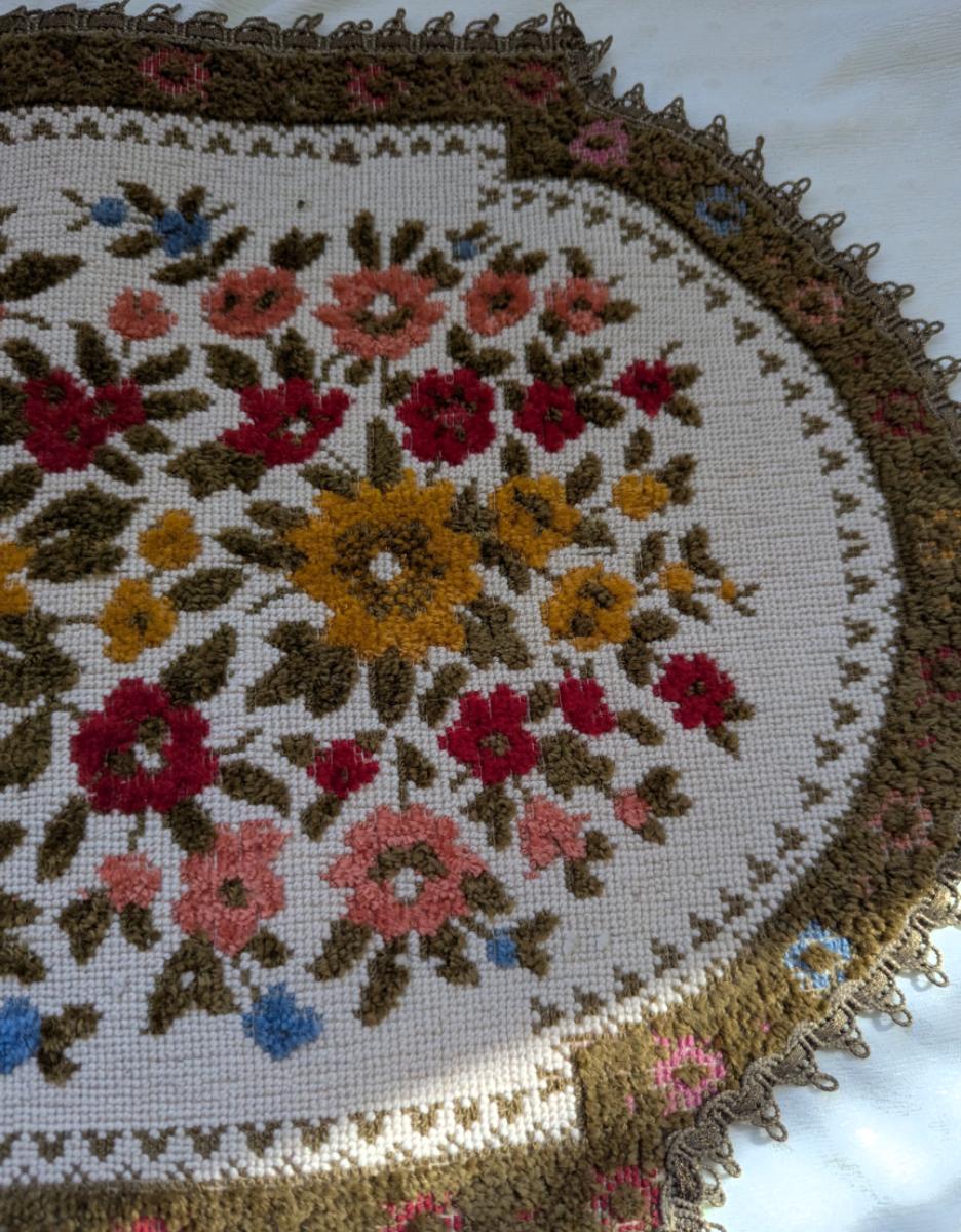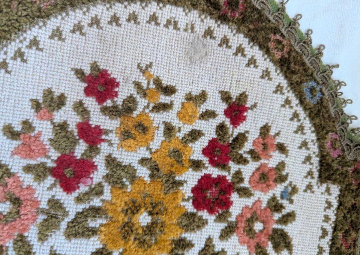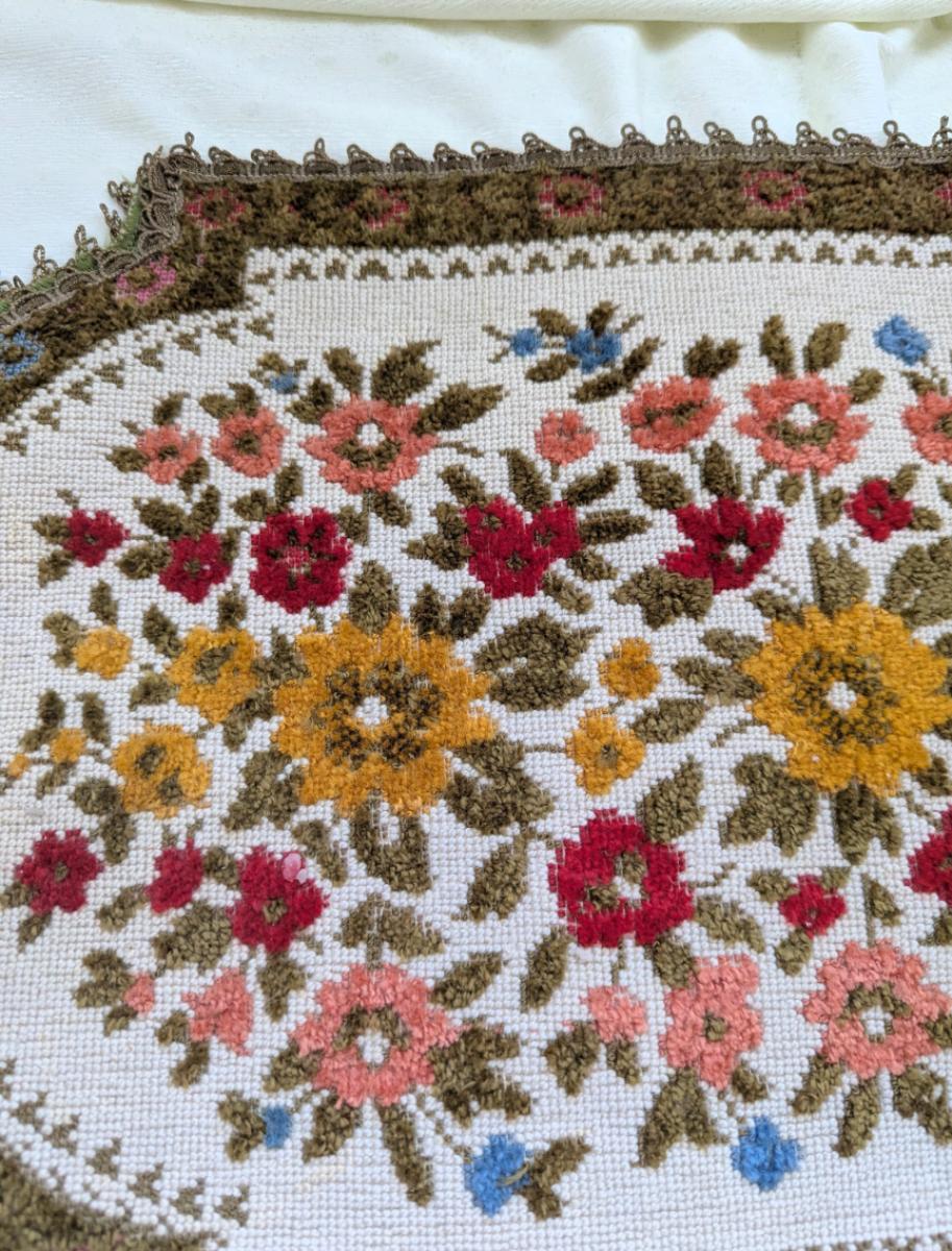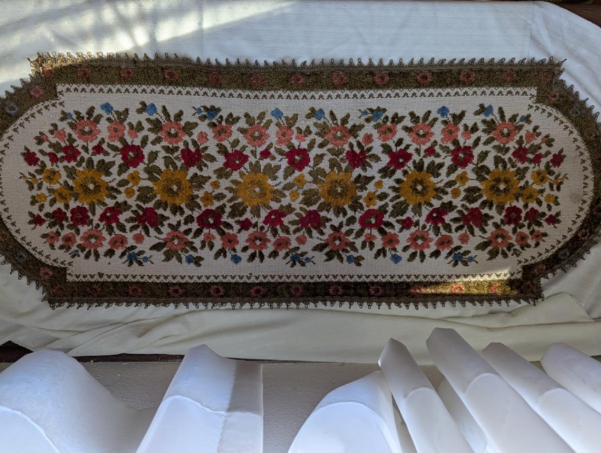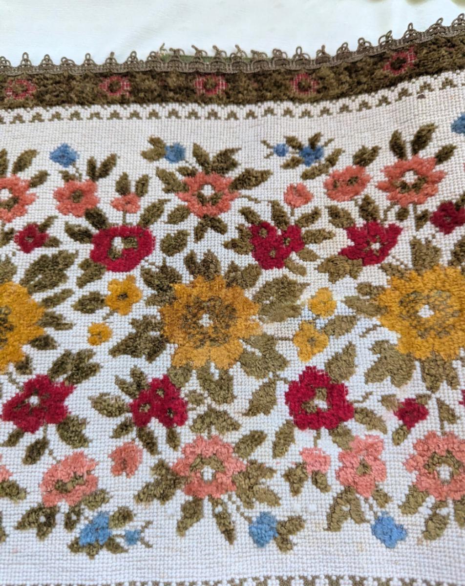 Beautiful Runner With Needle Point Flowers, Made in Belgium.