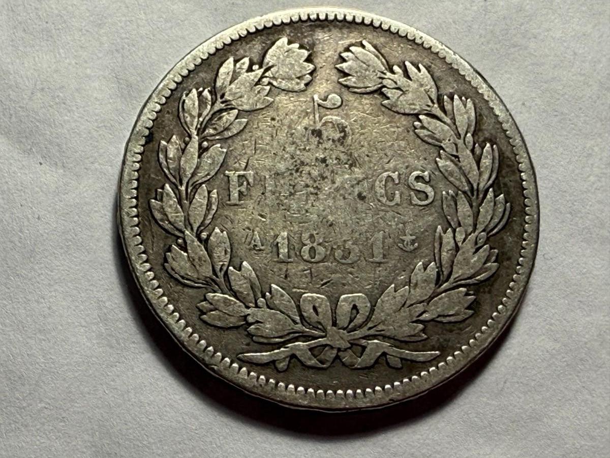 FRANCE 1831 Louis Philippe I French Silver 5 Francs Coin (.900 Silver ASW), as Pictured. $5 DOMESTIC SHIPPING,