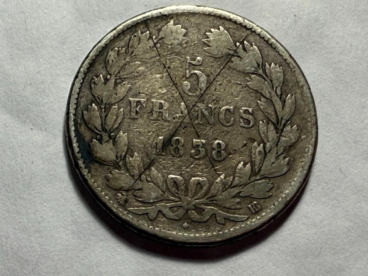FRANCE 1838 Louis Philippe I French Silver 5 Francs Coin (.900 Silver ASW), Scratched Reverse as Pictured. $5 DOMESTIC SHIPPING.