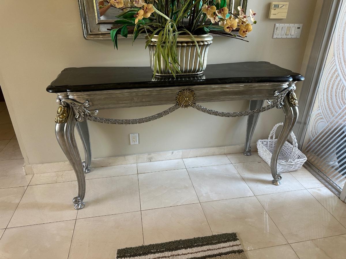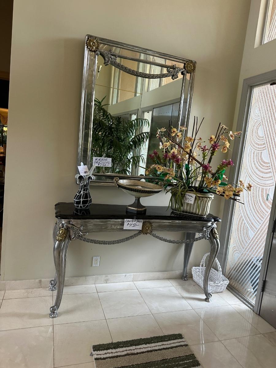 decorative mirror and table dimensions for the table is 65 and 62 inches is the mirror