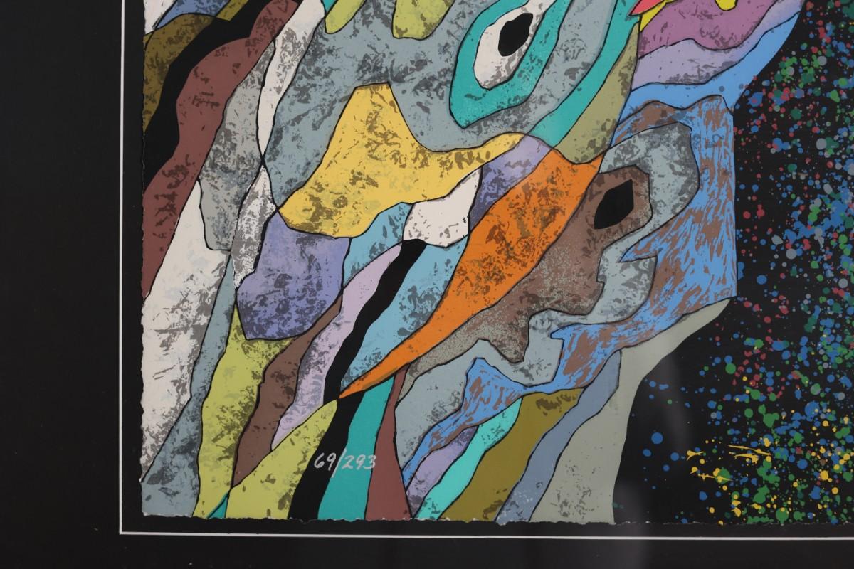 Serigraph in color on hand-deckled paper, signed in silver ink and numbered (see photos).