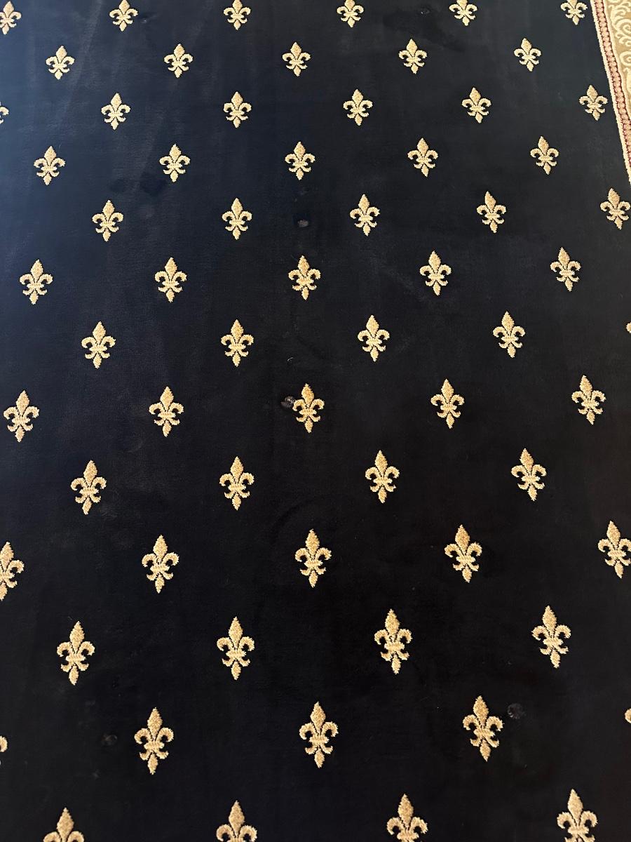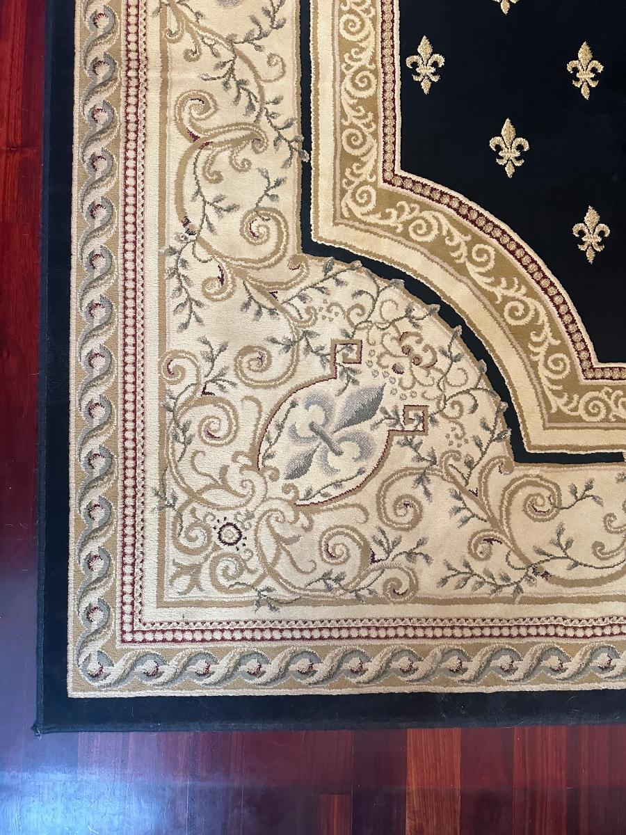 Imperial Collection area rug featuring a black field with repeating fleur-de-lis motif and decorative border.