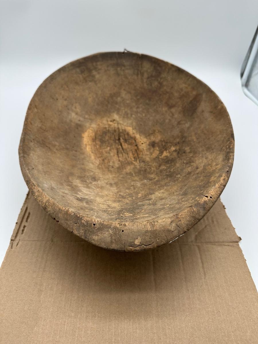 Large Antique Hand-Carved Wooden Dough Bowl / Trencher Bowl