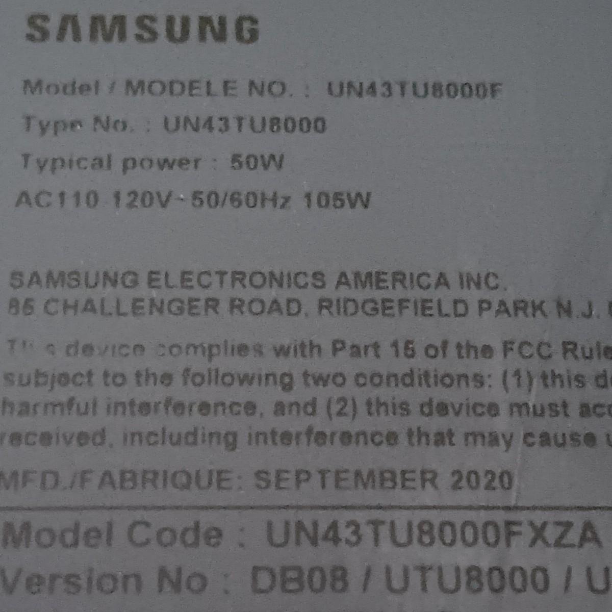 LOT 3: Samsung 43" Crystal UHD 4K TV TU-8000