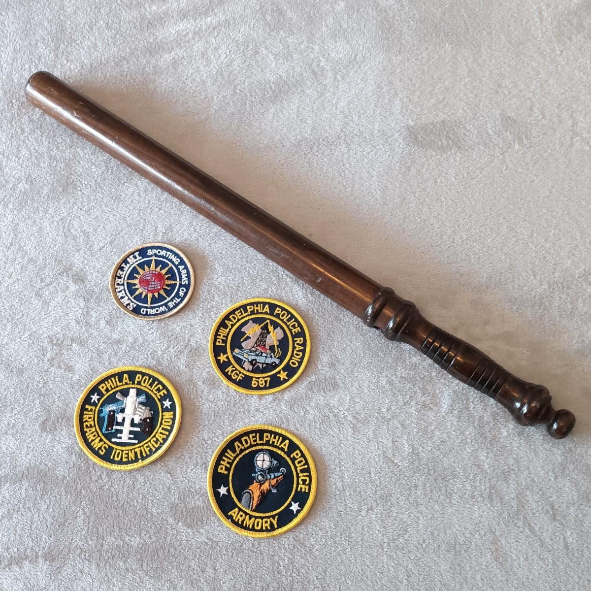 LOT 7: Antique Wooden Nightstick with Philadelphia Police Dept Patches
