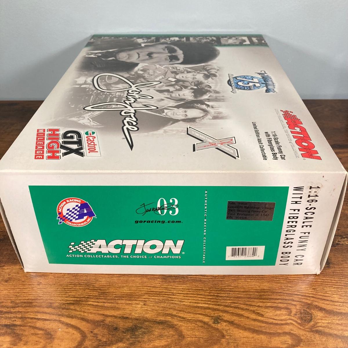 LOT 50: Action Collectibles 1:16 Scale John Force Castrol GTX Funny Car with Fiberglass Body (High Mileage Three Stooges 75th Anniversary