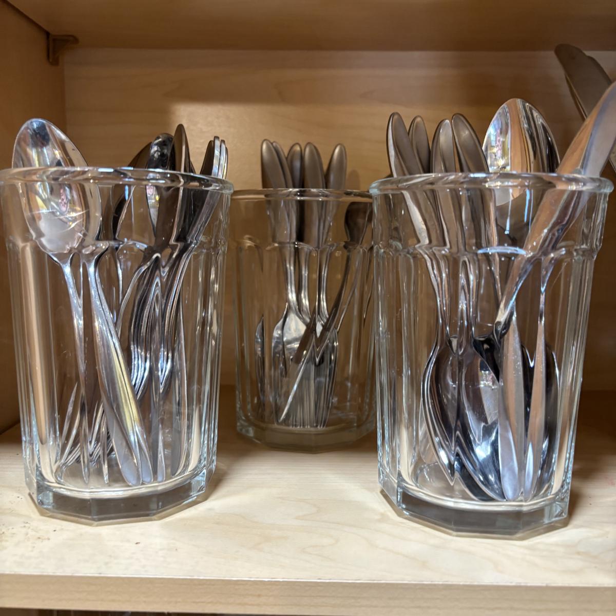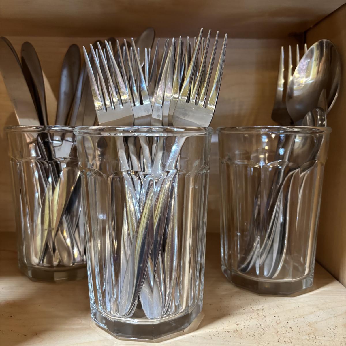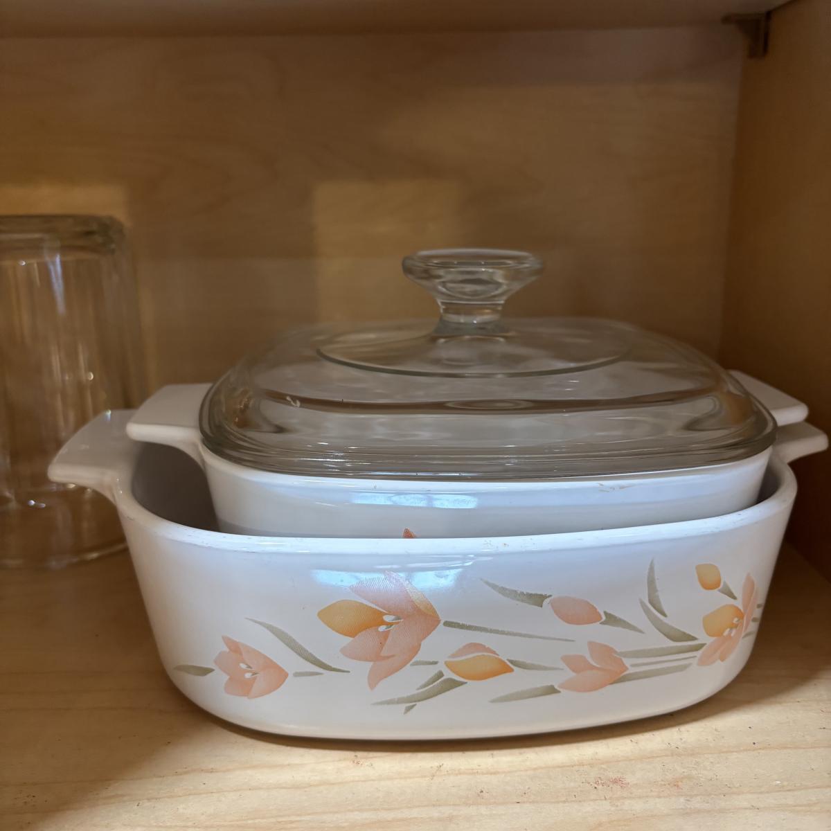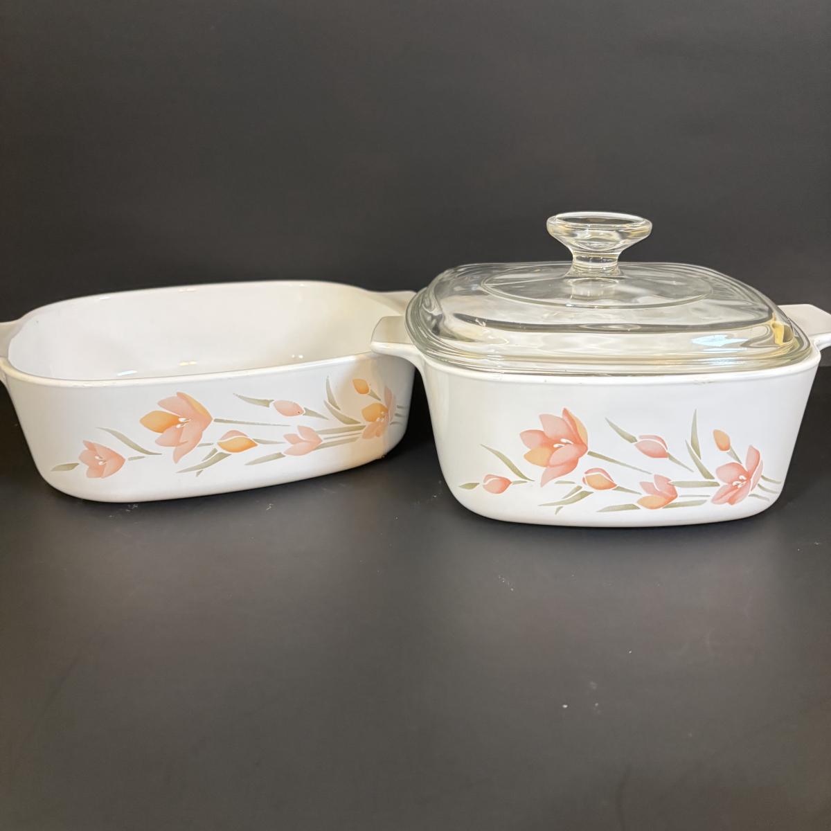 LOT 85: Vintage Corelle Blue Cornflower Soup/Cereal Bowls, Corning Ware Peach Floral Casserole Dishes, Oneida Flatware & More