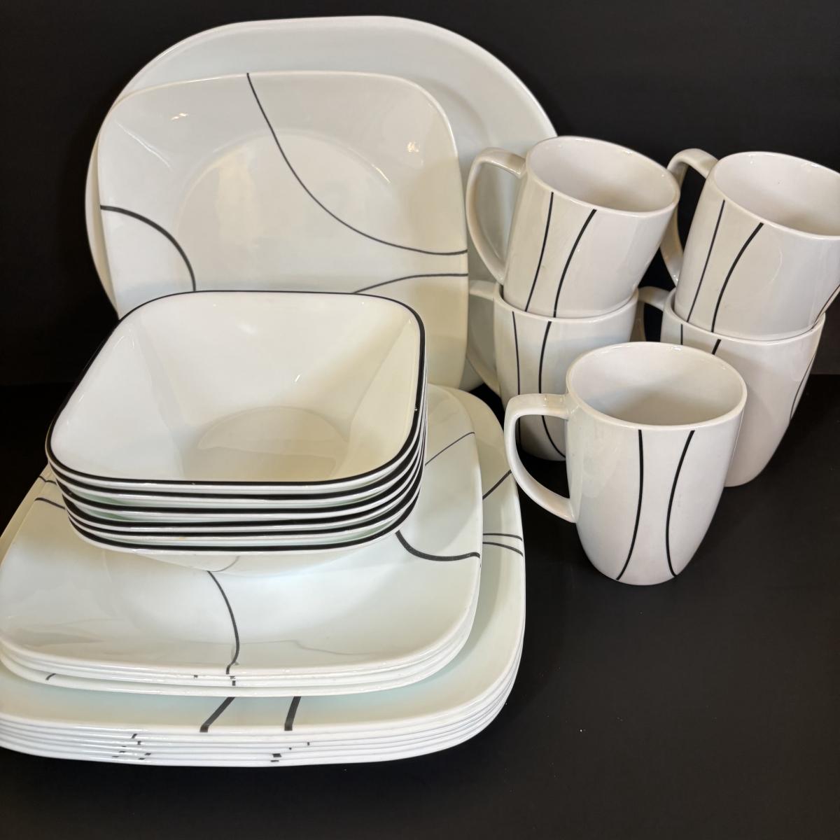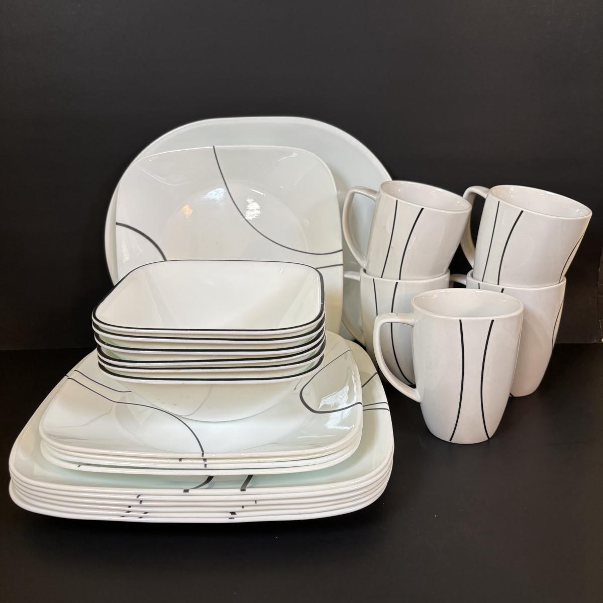 LOT 87: Corelle Square Simple Lines Dinnerware Set