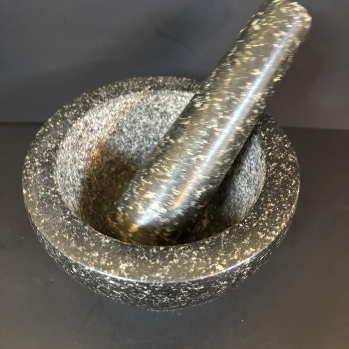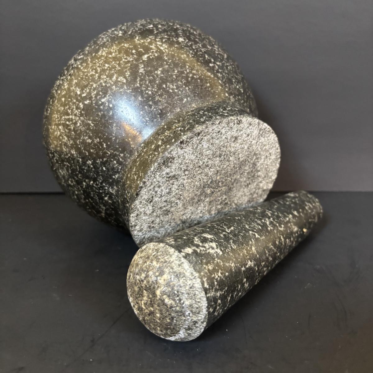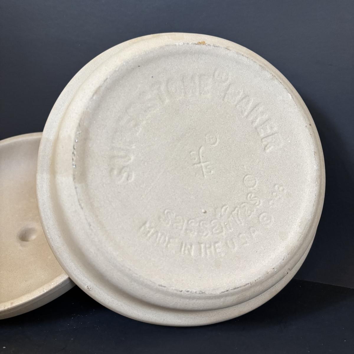 LOT 90: Vintage Polish Pottery Cheese Lady/Server, Vintage Sassafras Stoneware Chestnut Roaster along with a Mortar & Pestle