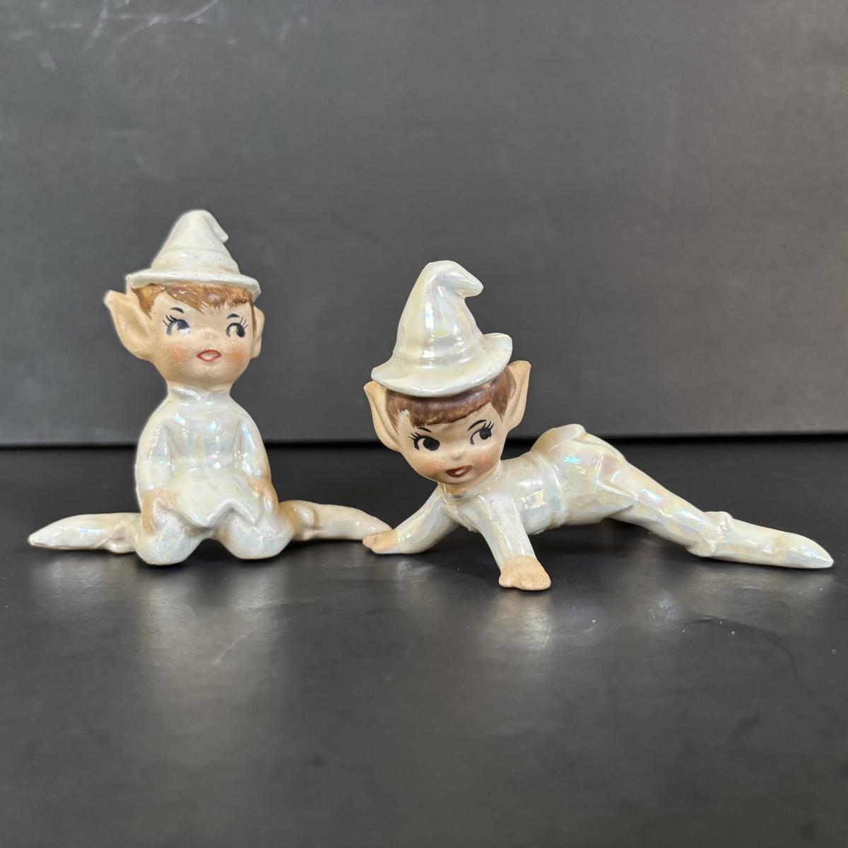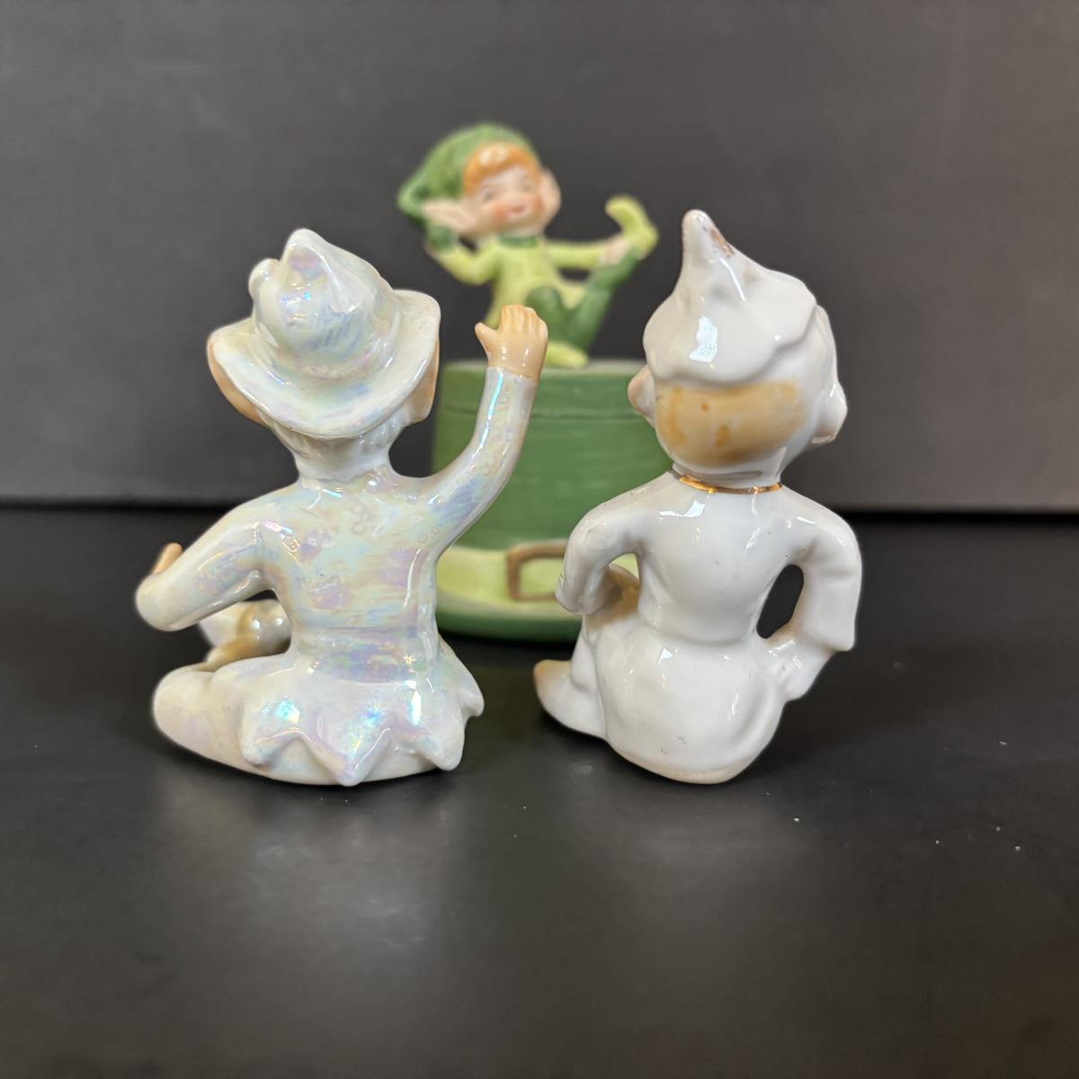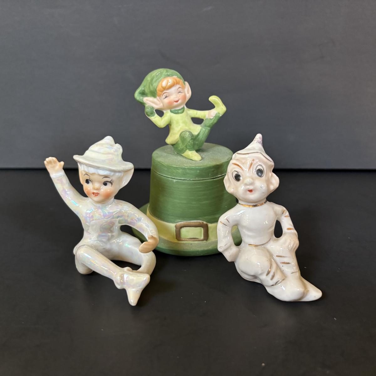 LOT 113: Vintage Pixies & Elves Figures including Lefton, a Candle Hugger & Christmas