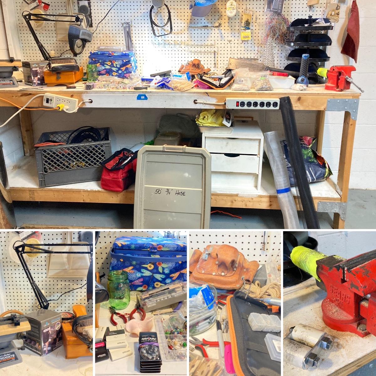 LOT 217: Basement Finds - Contents of Items on Work Bench