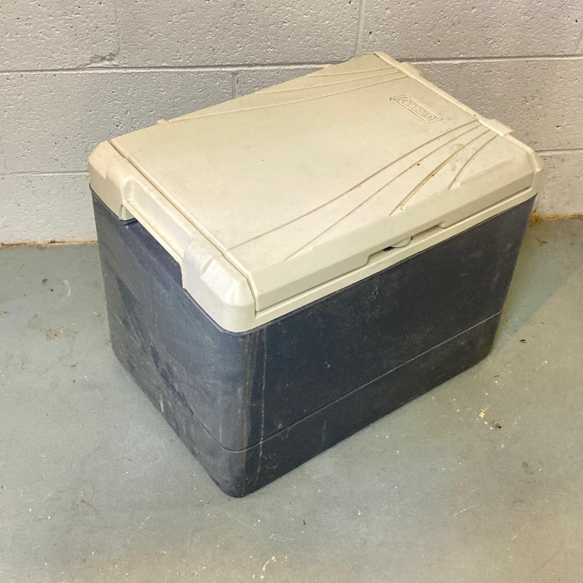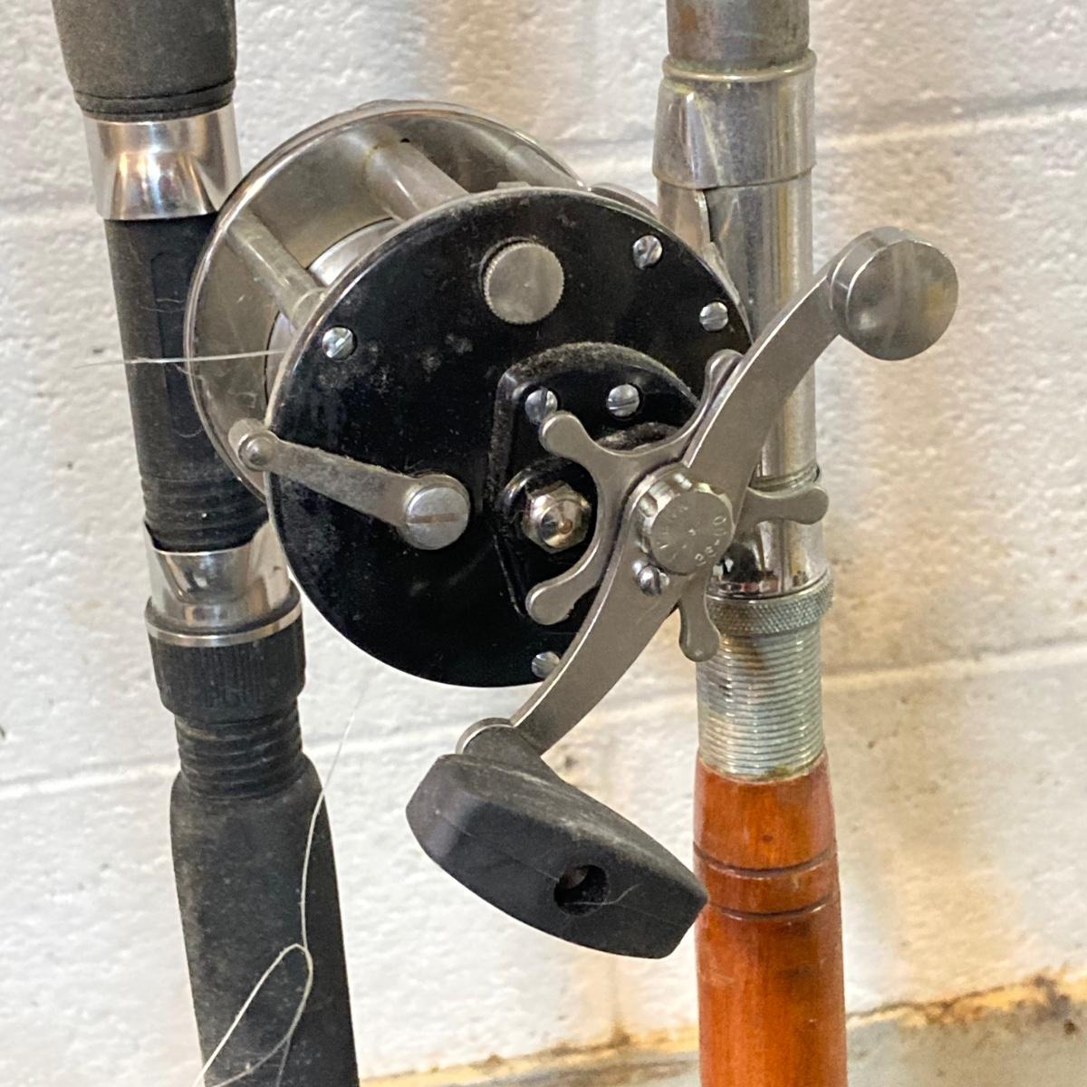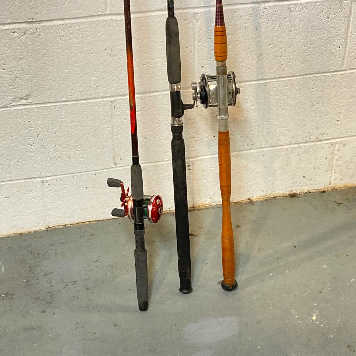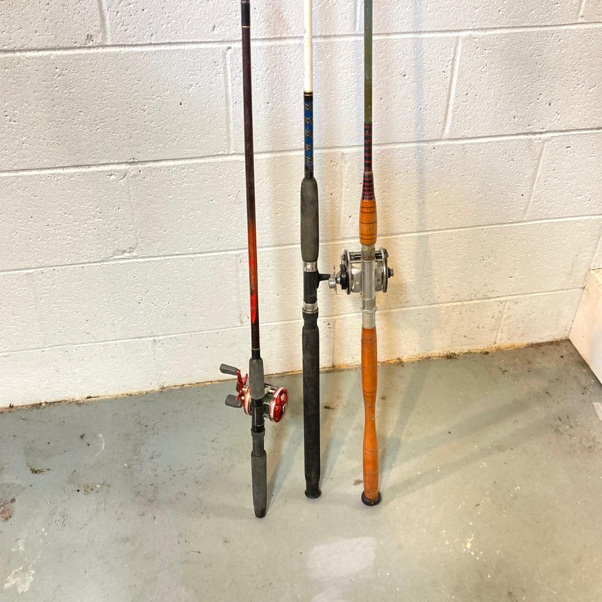 LOT 220: Three Fishing Rods (Two with Reels) and Coleman Powerchill with Car Adapter