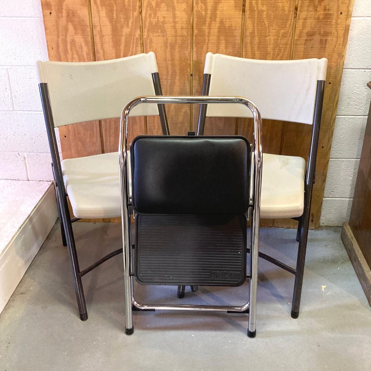 LOT 227: Pair of Samsonite Folding Chairs and Tricam Folding Step Stool