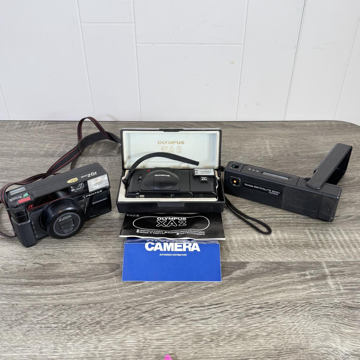 LOT 3K: Vintage Cameras: Kodak Ektralite 500, Olympus XA2 & Pentax IQZoom AF