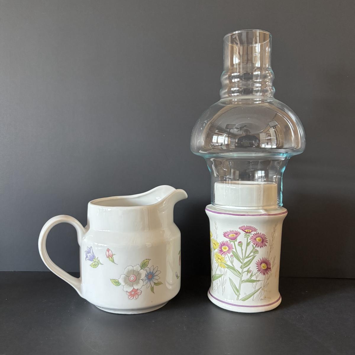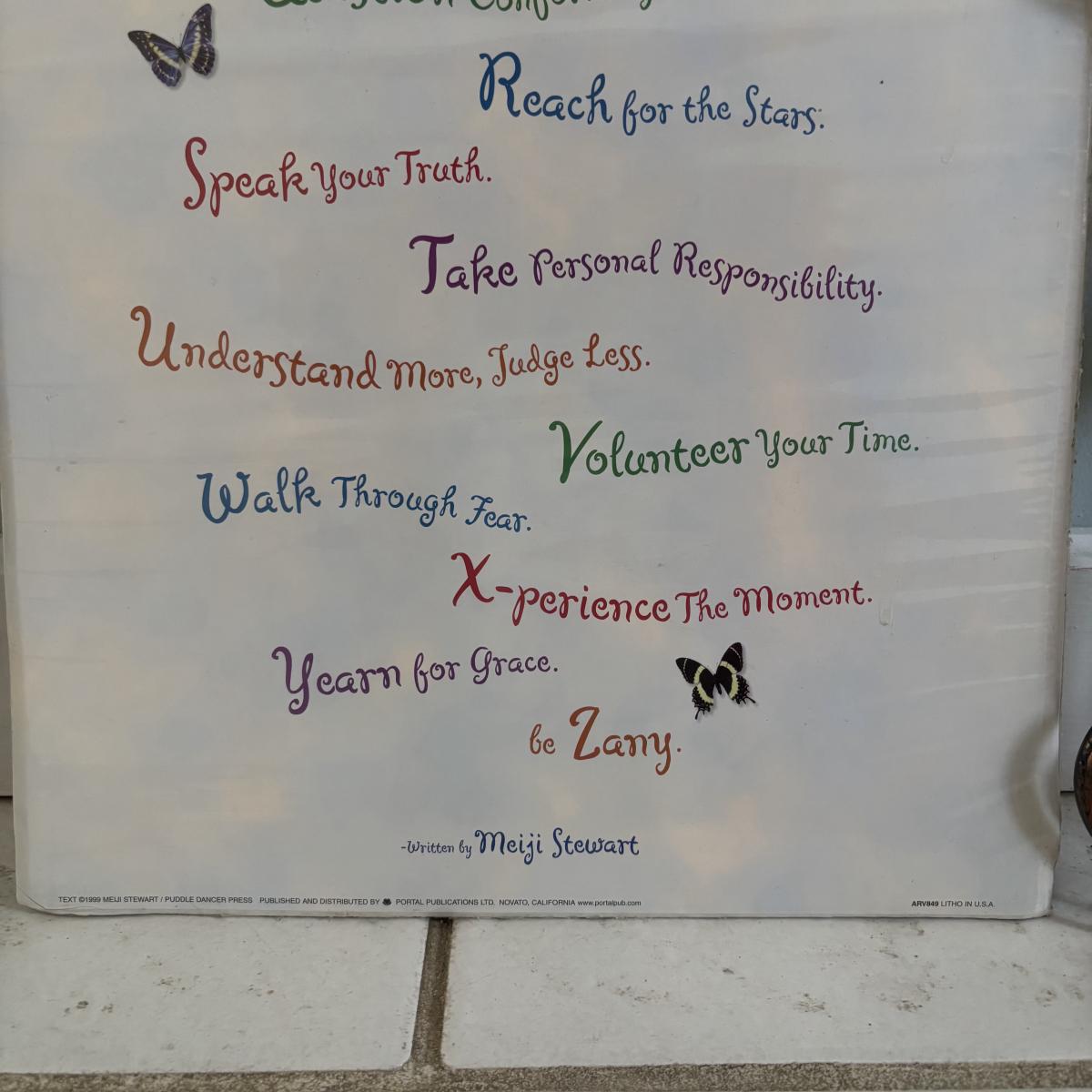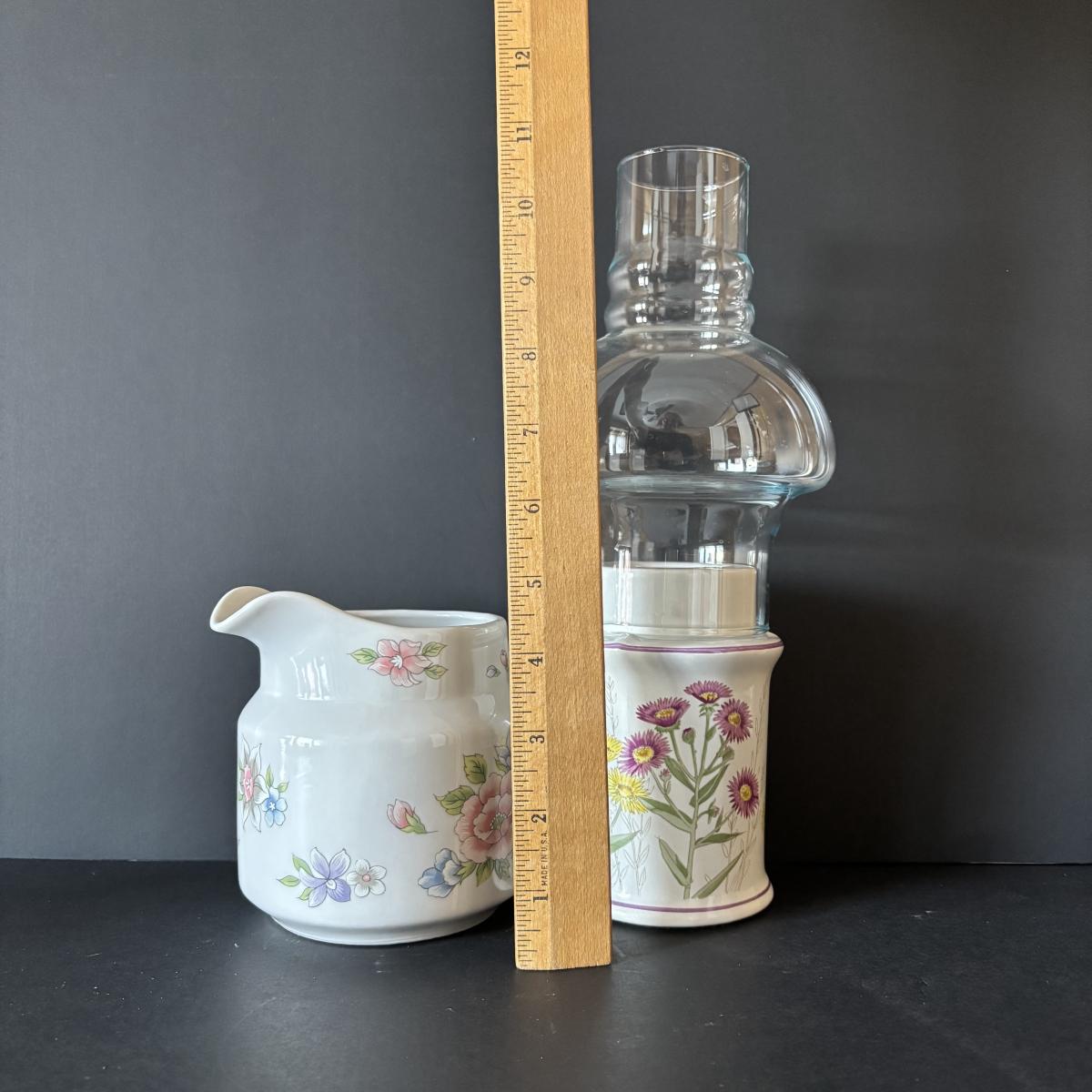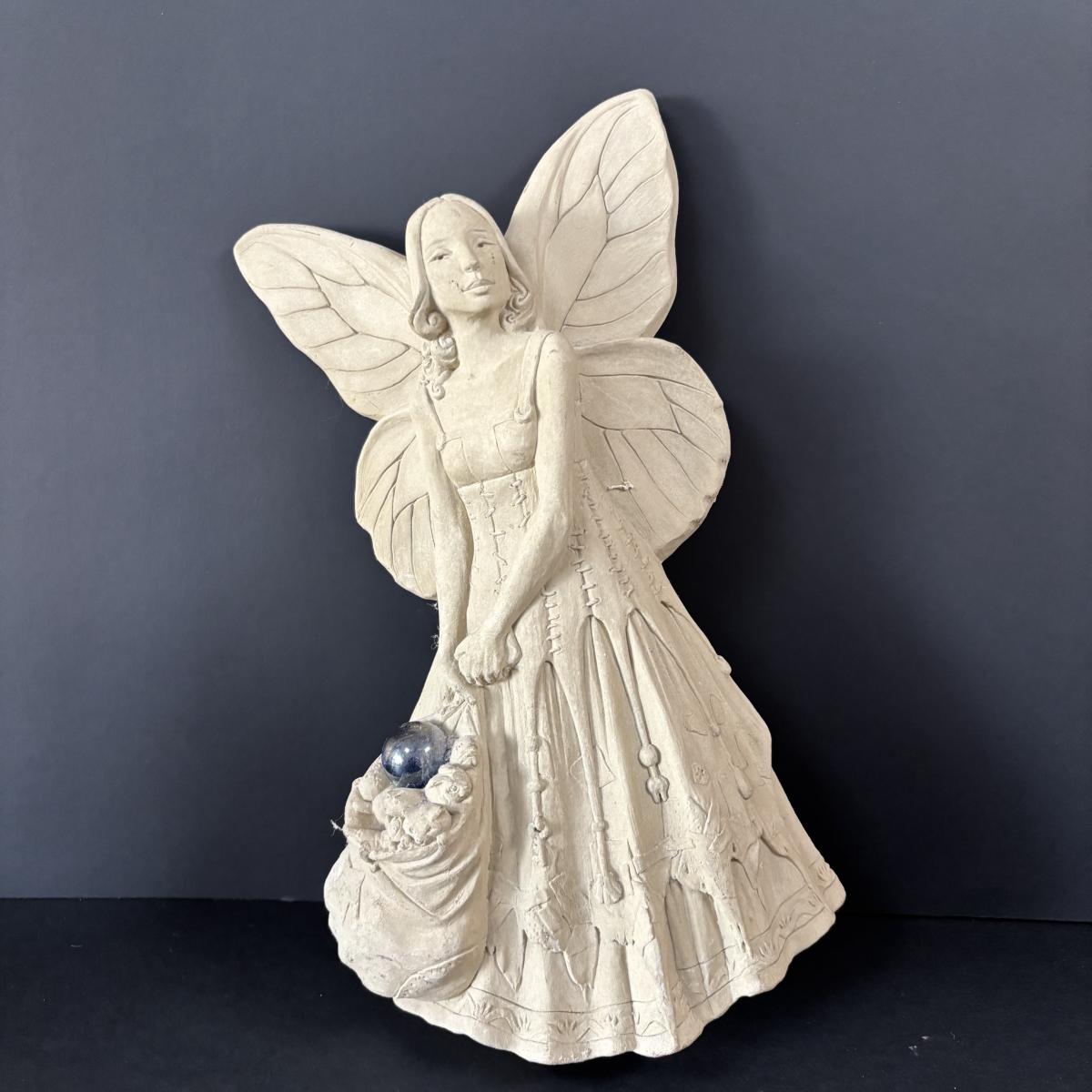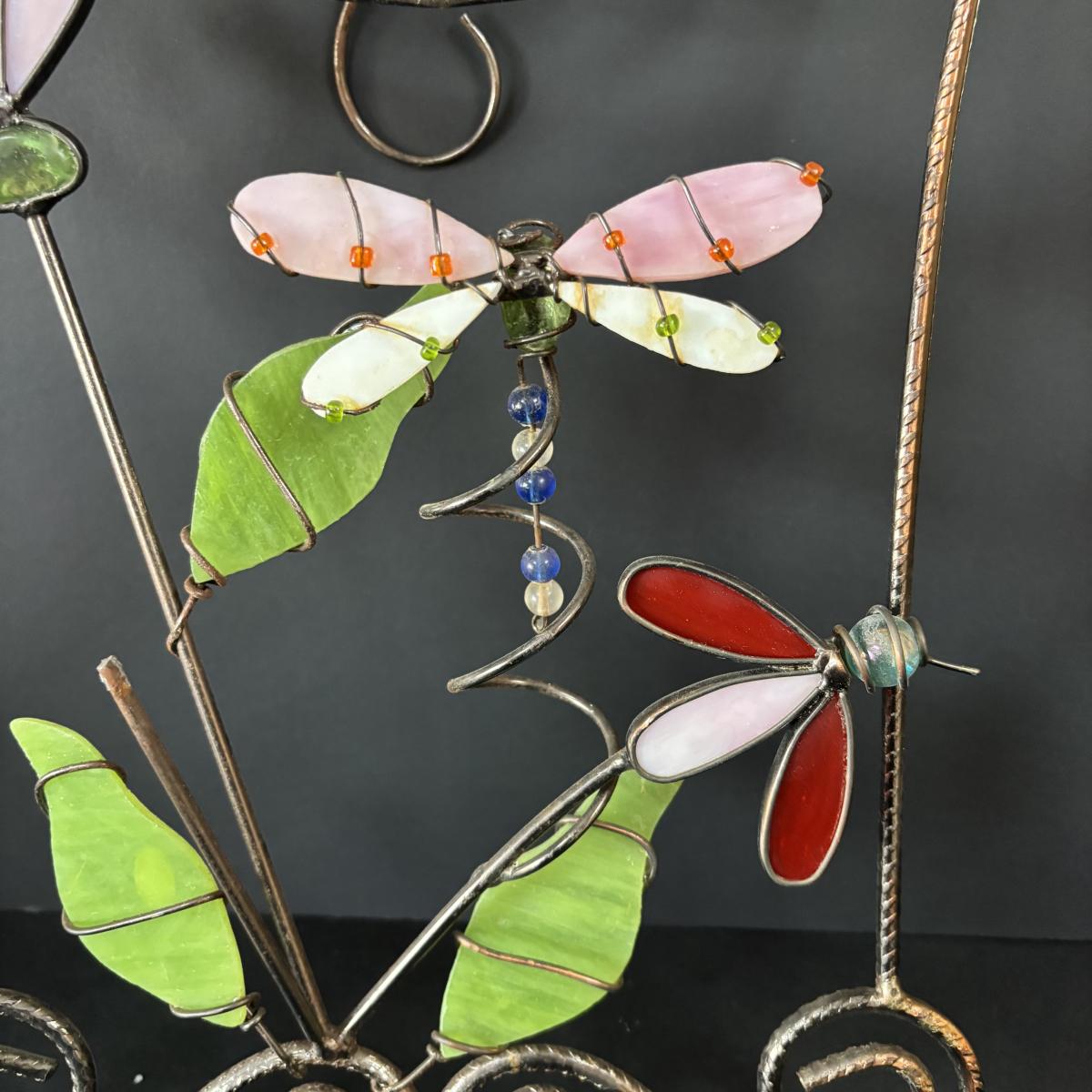 LOT 29: Home Decor: Cement Fairy Plaque, Portal "Dare To" Poster, Windchimes, Welcome Sign w/Stained Glass Accents, Colonial Candle Votive Holder. Floral Ceramic Pitcher