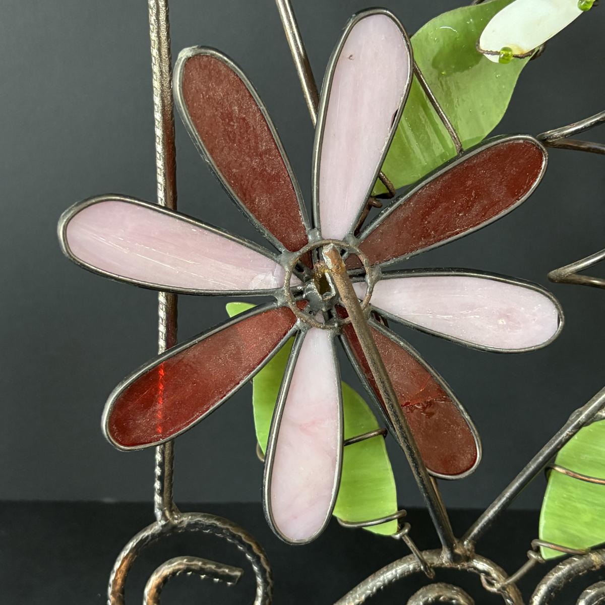 Welcome sign has condition issues: flower is broken off and has a cracked pedal as shown in the pictures