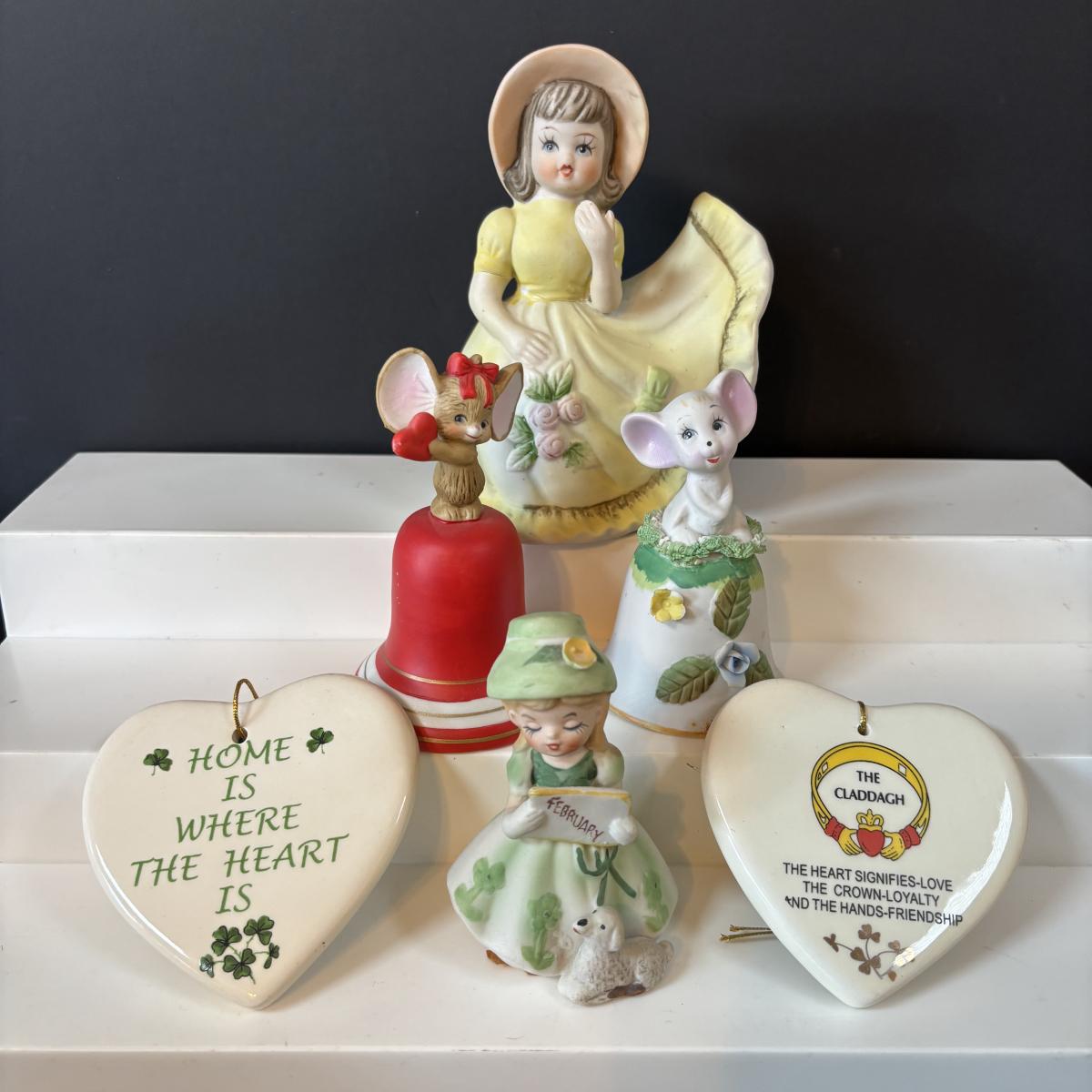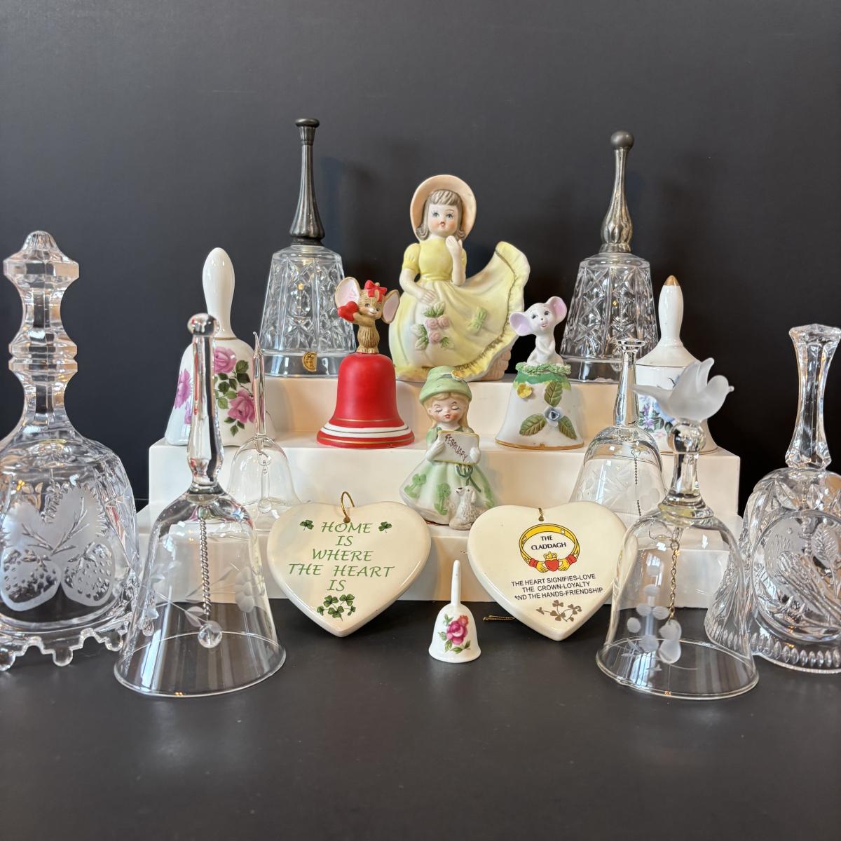 LOT 38: Porcelain & Crystal Bell Collection & More: Liffey Artefact Heart Ornaments Lefton Sweetheart, RCR Italy