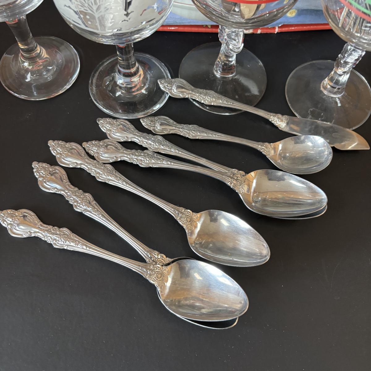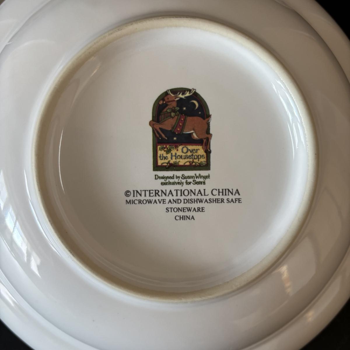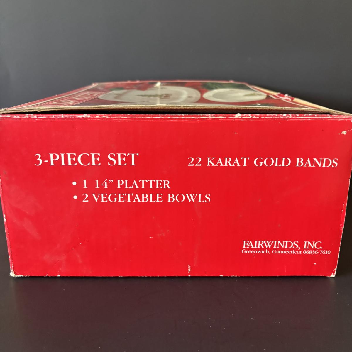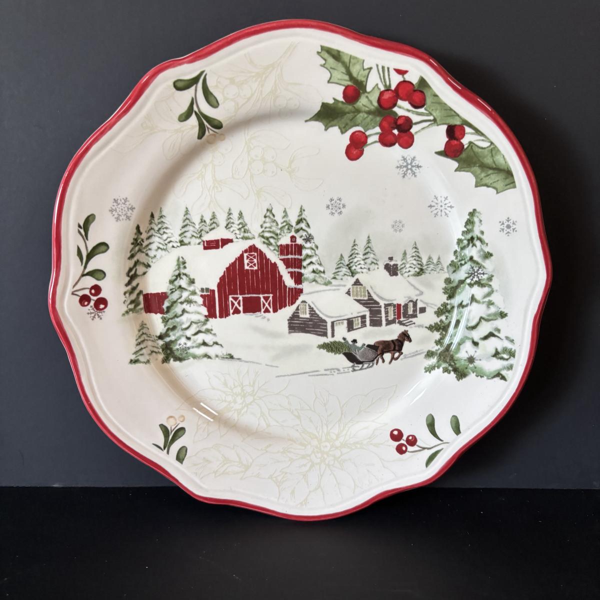 LOT 42: Vintage Gemco Christmas Tree Salt/Pepper Shakers, Holiday Water Goblets, Holiday Hostess 3-pc Serving Set, Susan Winget "Over the House Tops" Serving Bowls & More