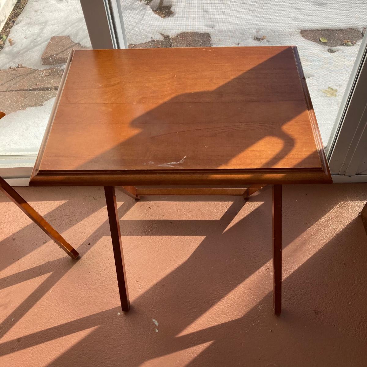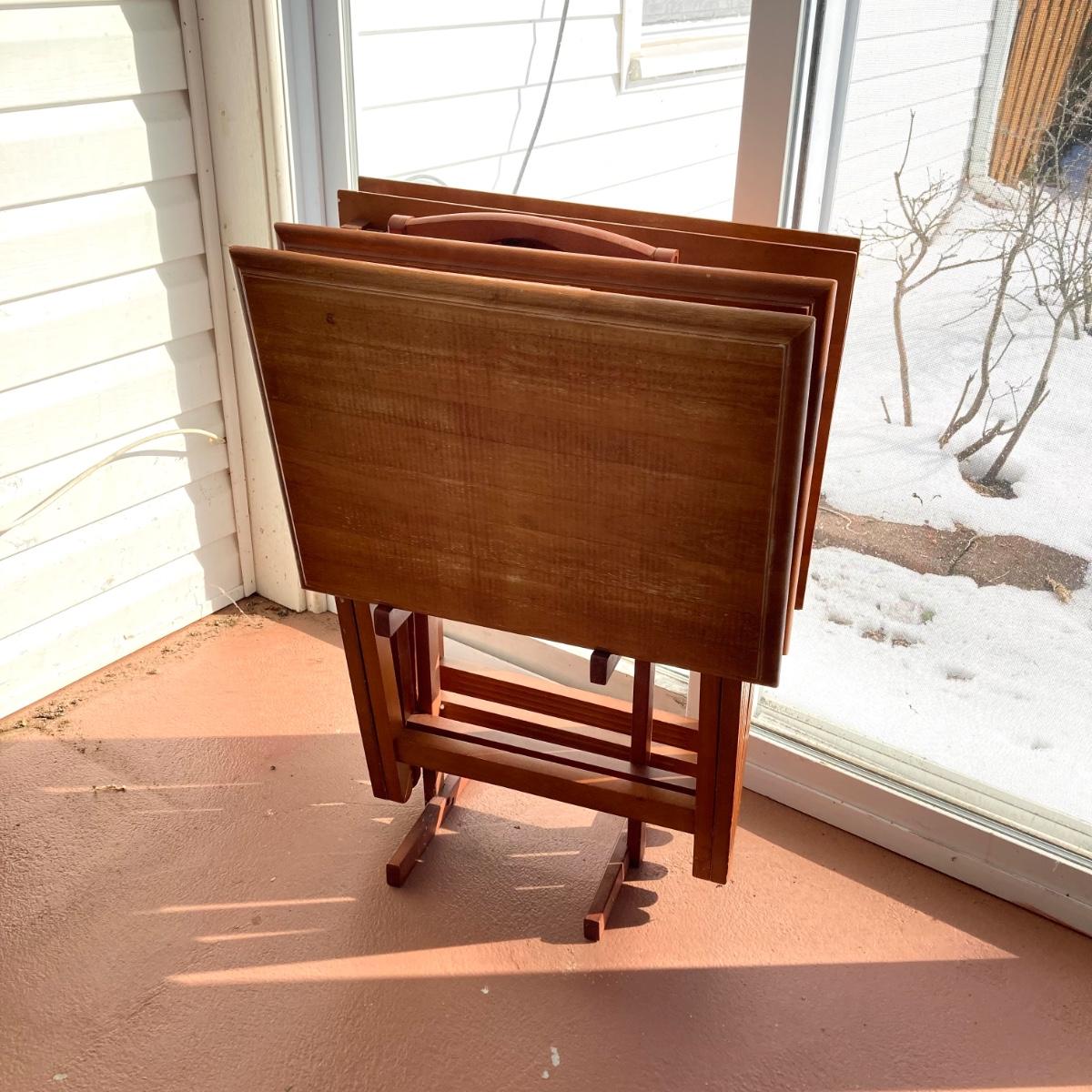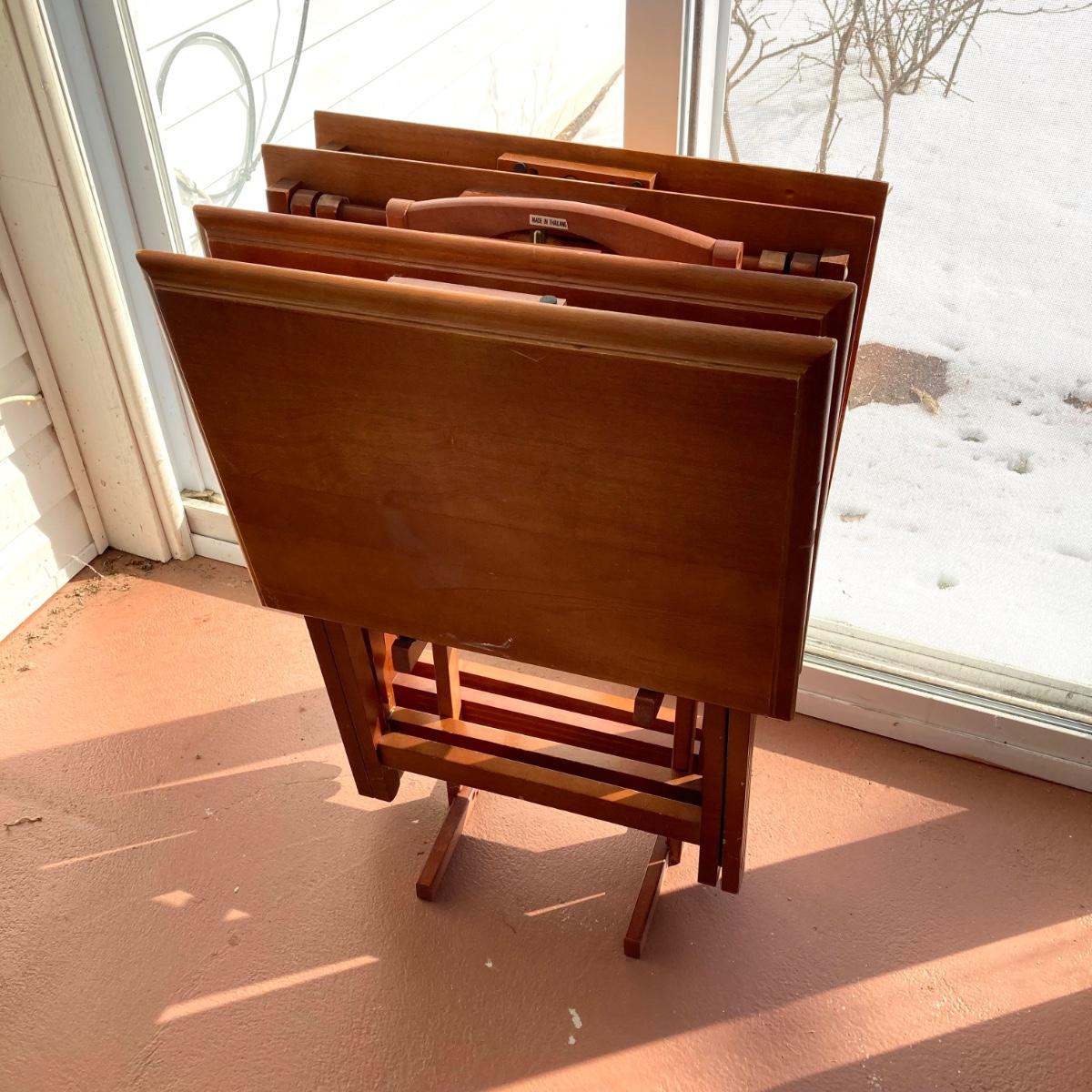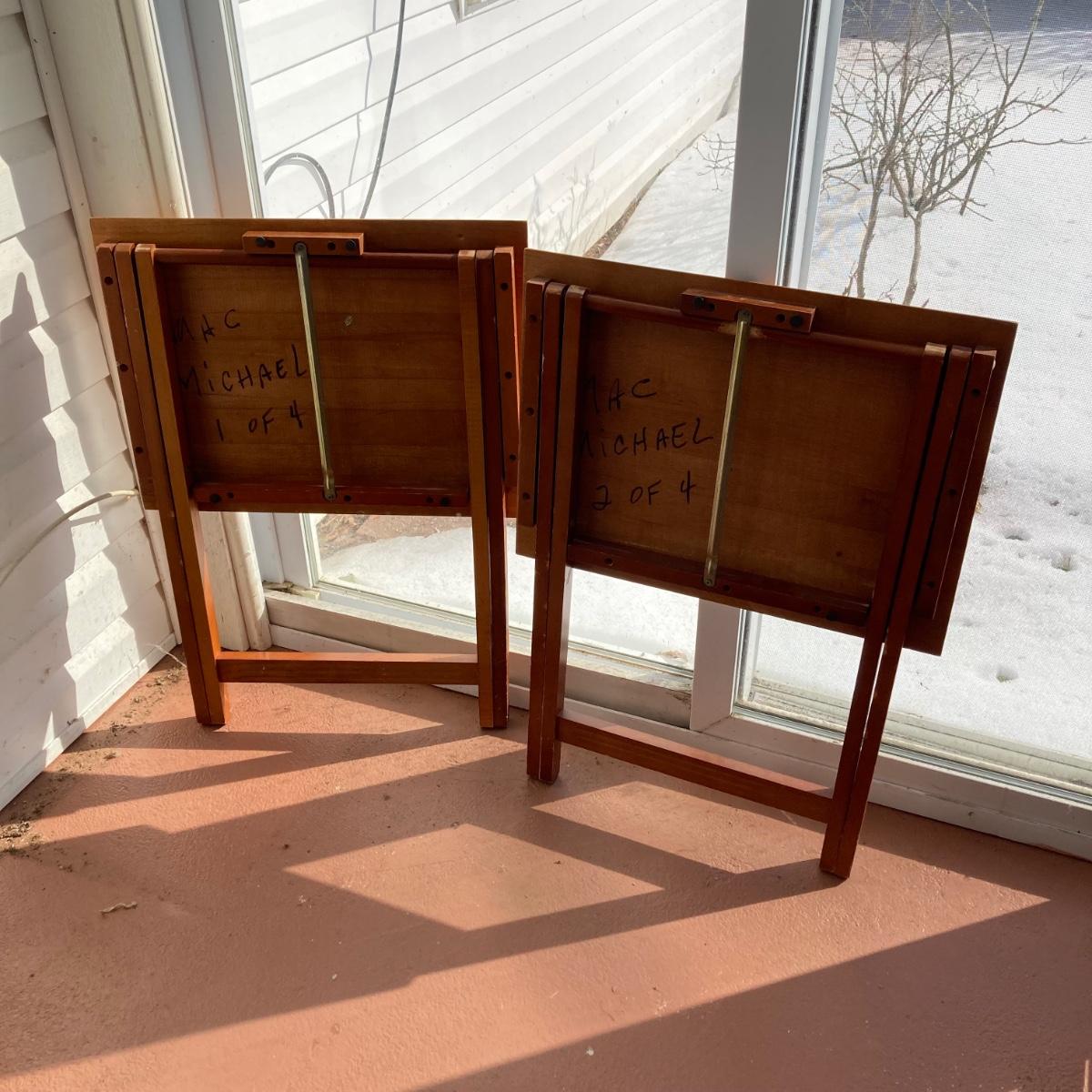 LOT 73S: Set of Four Wooden TV Tray Stands with Holding Base