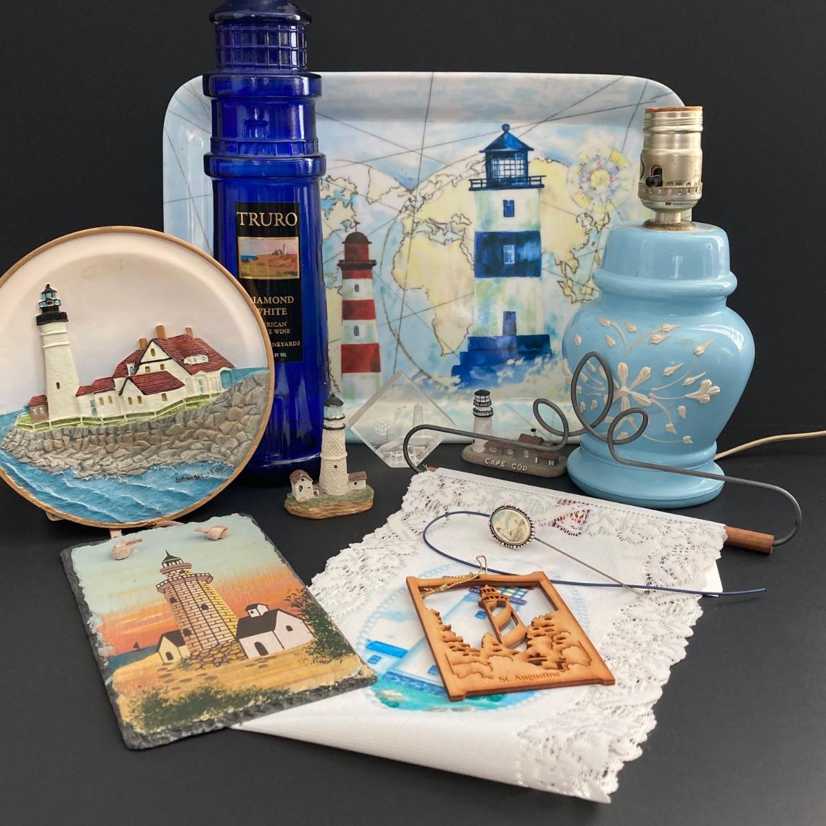 LOT 77L: Nautical Collection - Donna Elias The Collector's Series Light, Miniature Lighthouses, Truro Glass Lighthouse Bottle, Serving Tray, Wall Decor and More