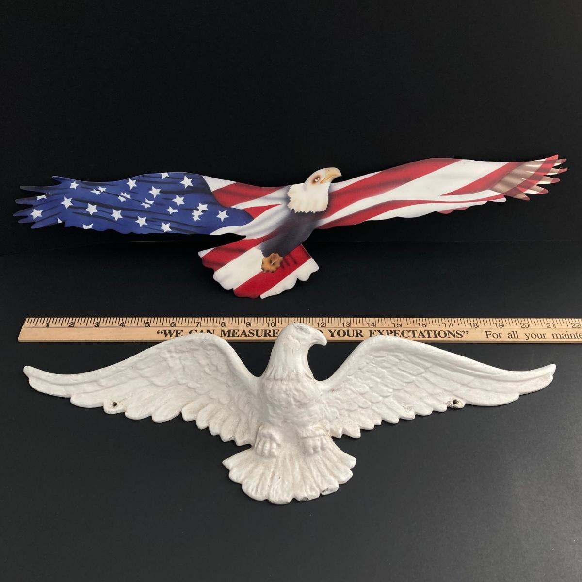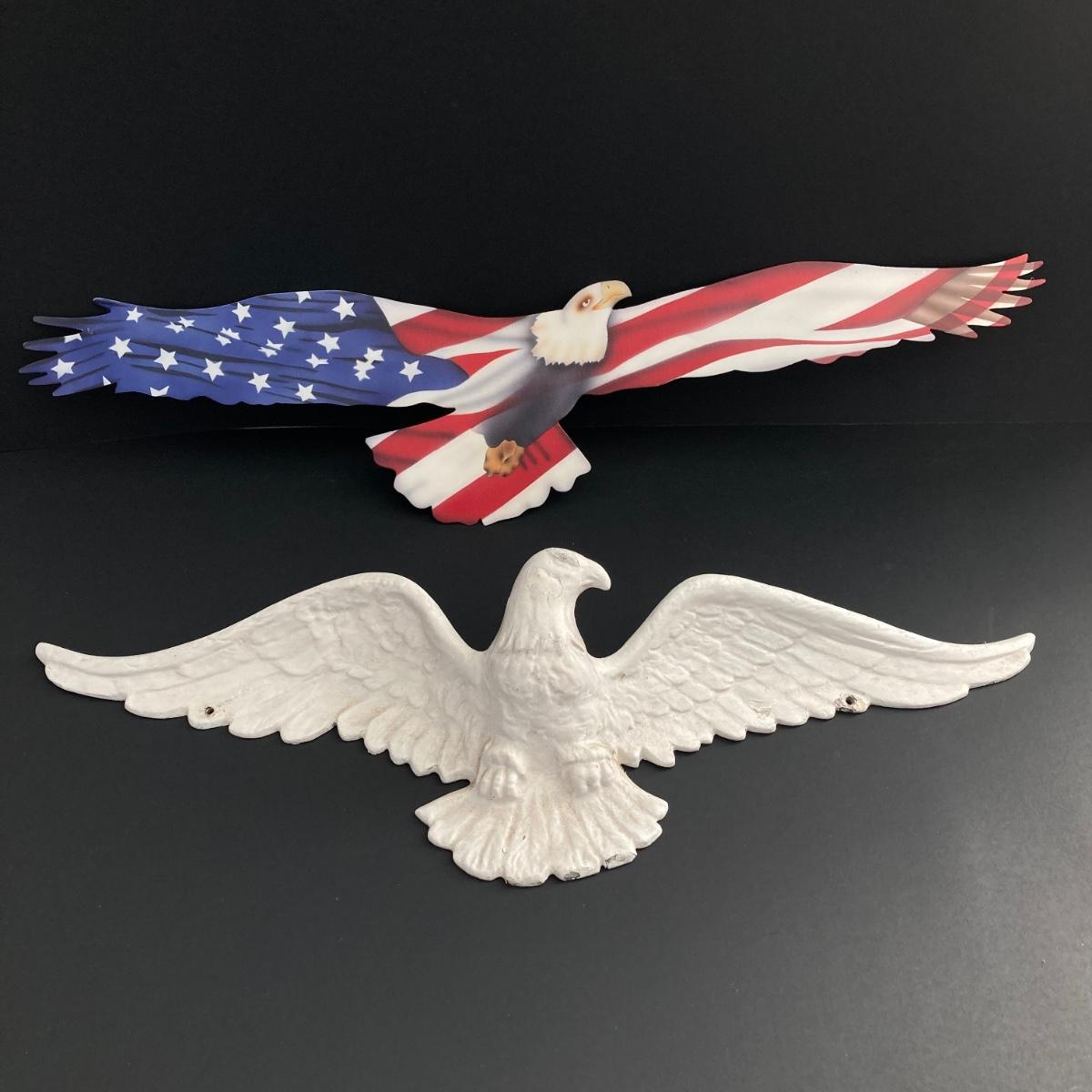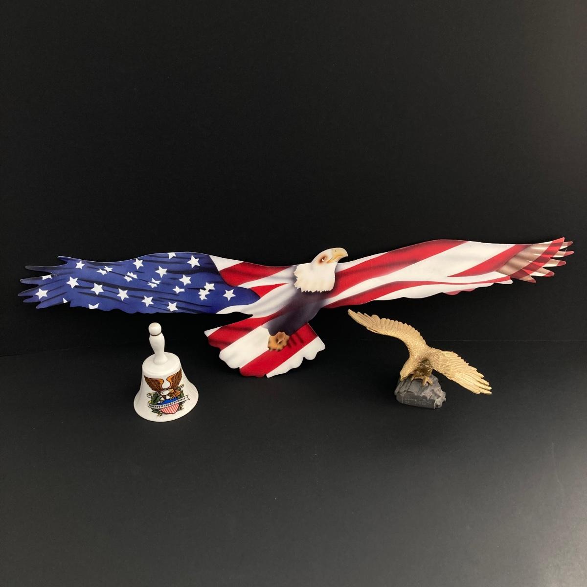 LOT 81L: Collection of Patriotic Decor - Wall Hangings, American Eagles, Carver E Tripp Numbered Figurine, Angel, Coasters and More