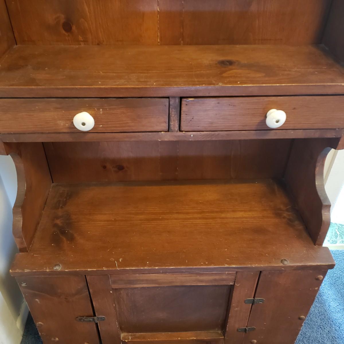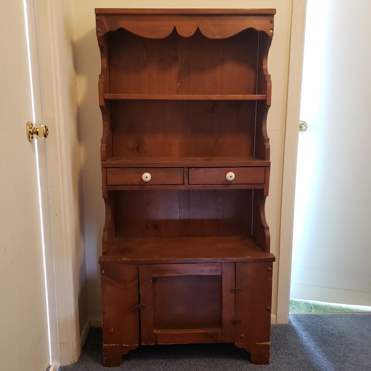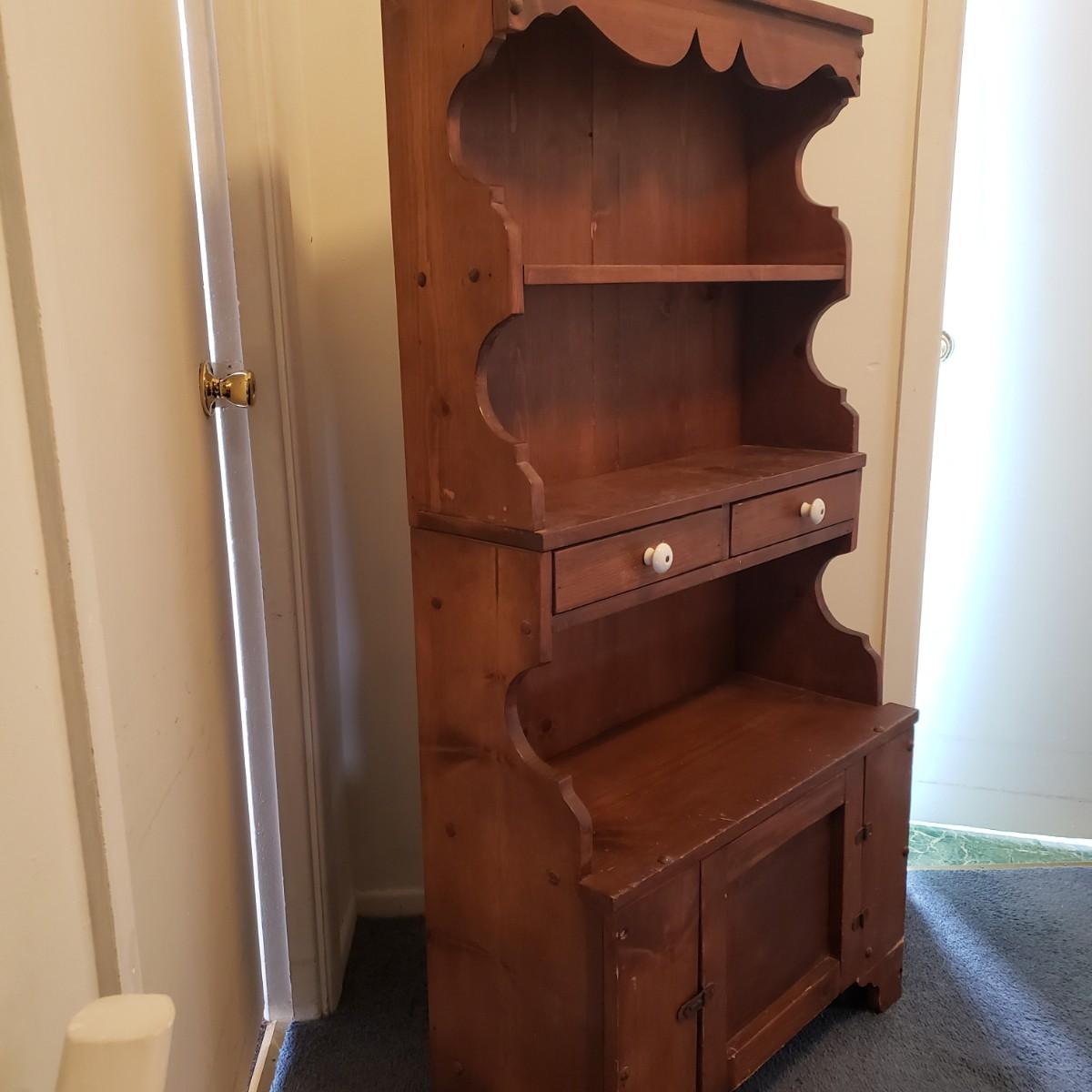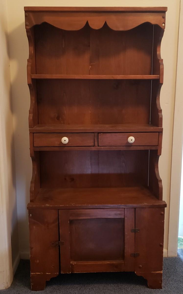 LOT 83: Antique Step Back Cupboard/Small Hutch