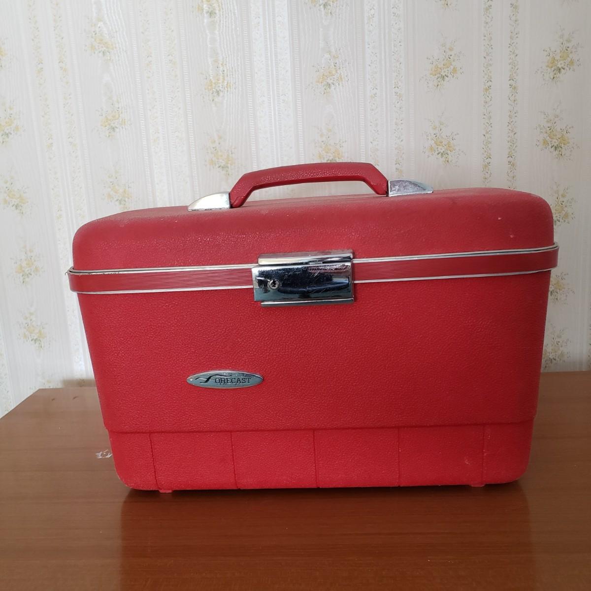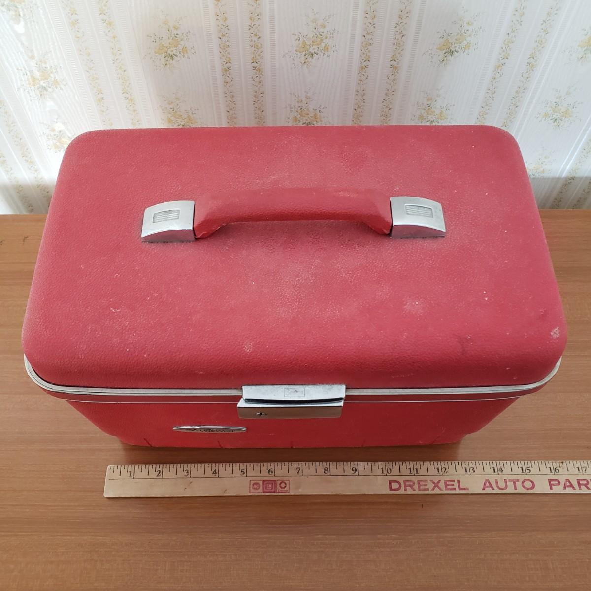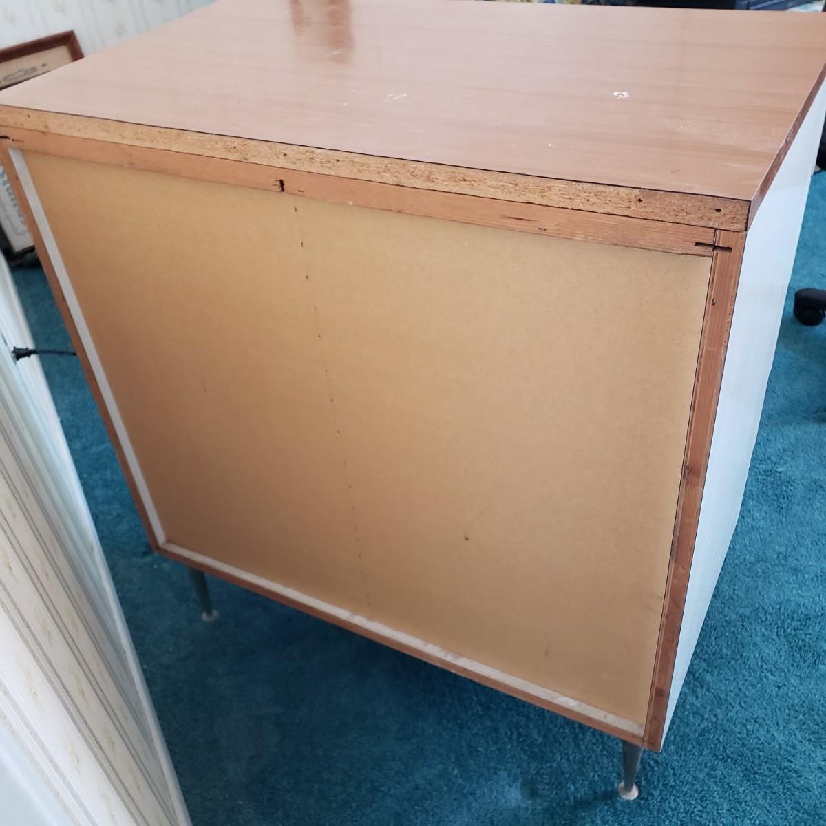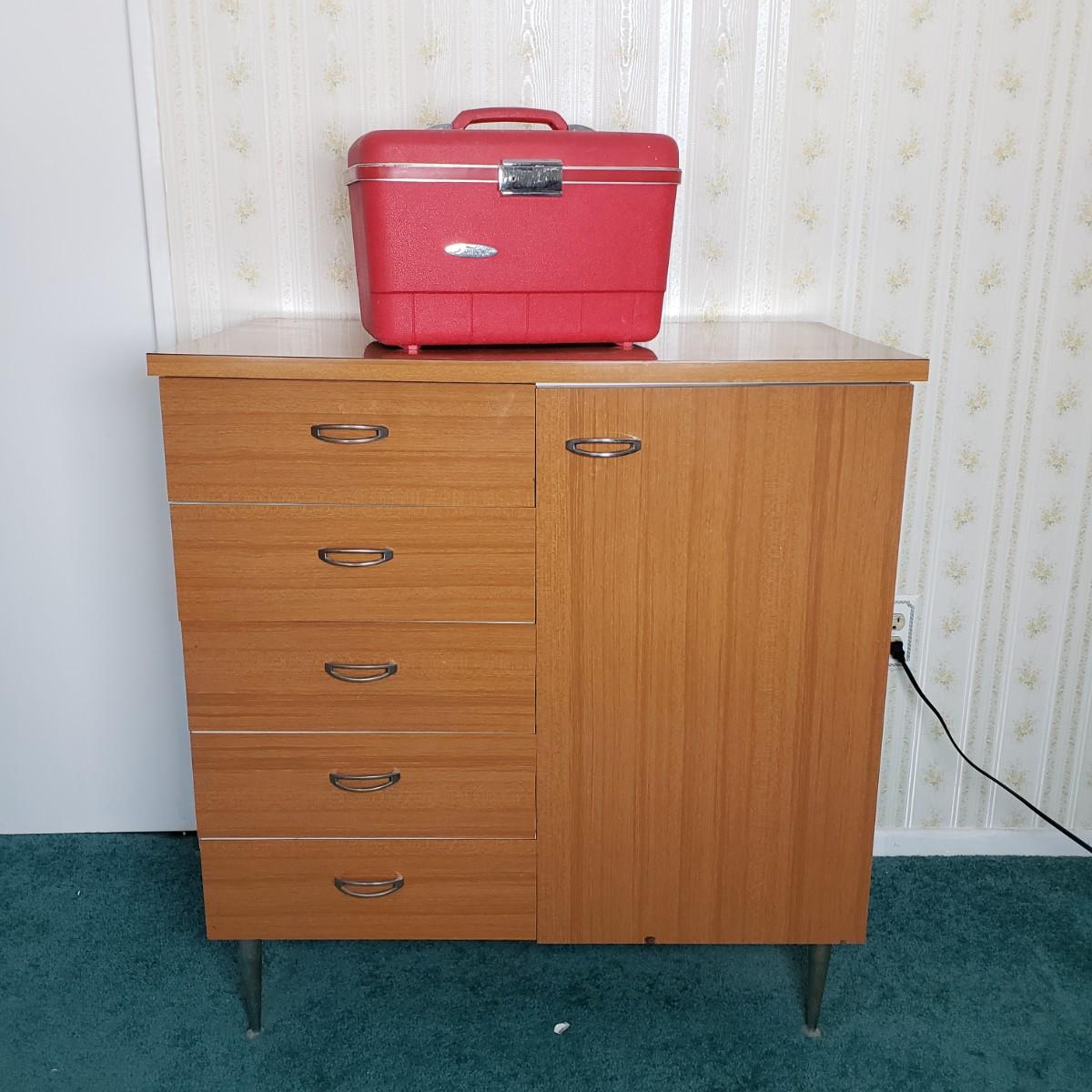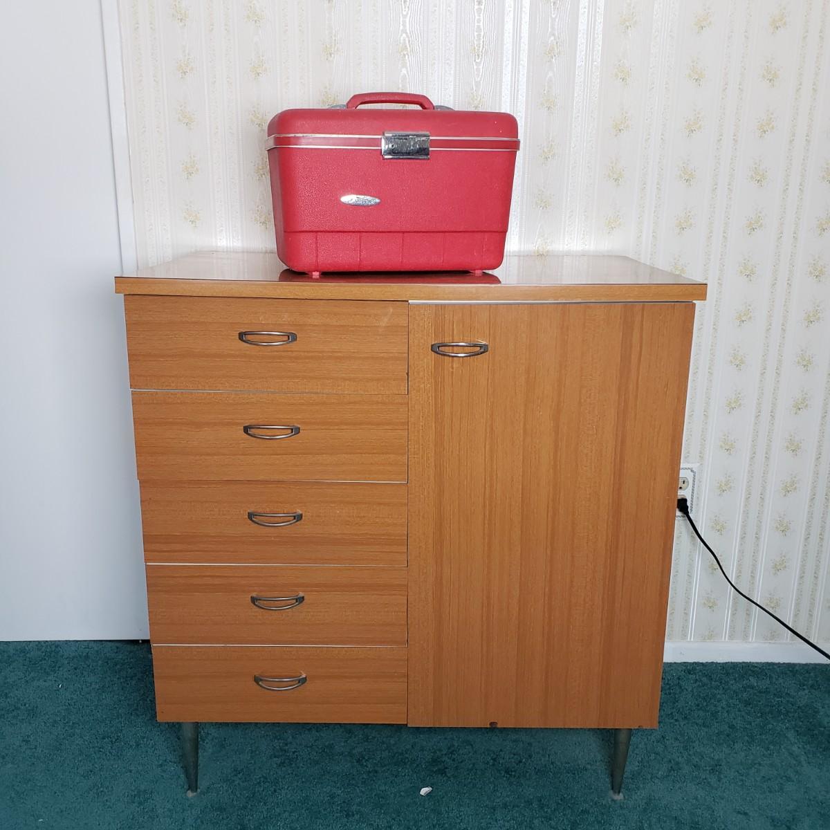 LOT 93: MCM Storage Cabinet with Drawers & Vintage Forecast Train Case