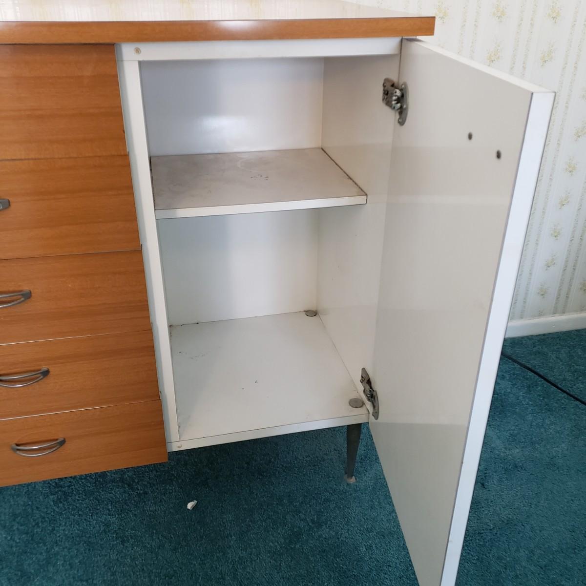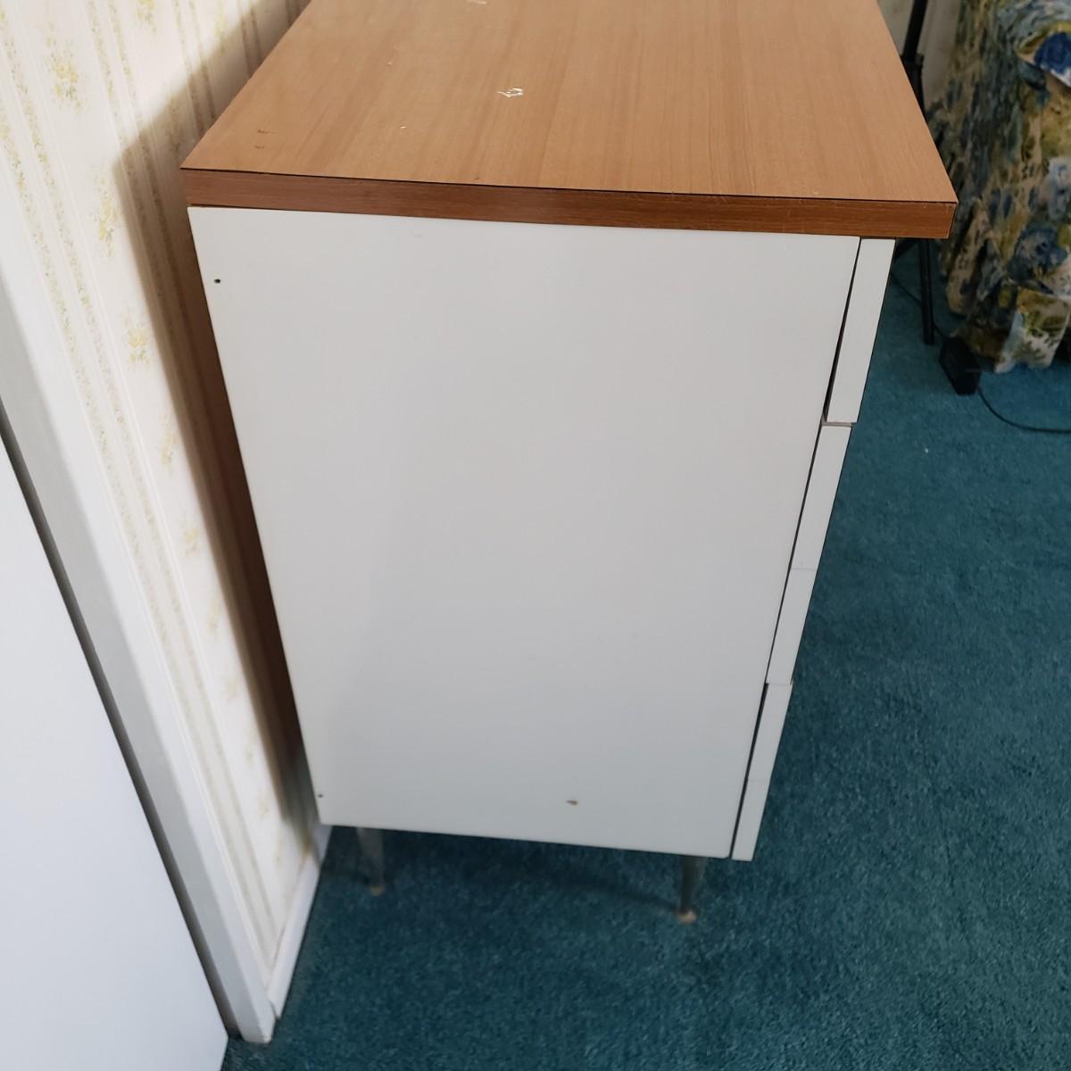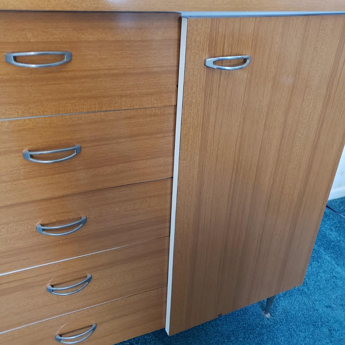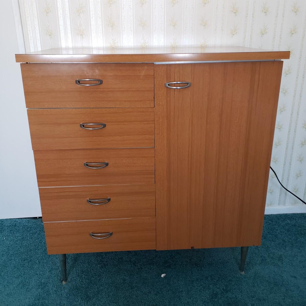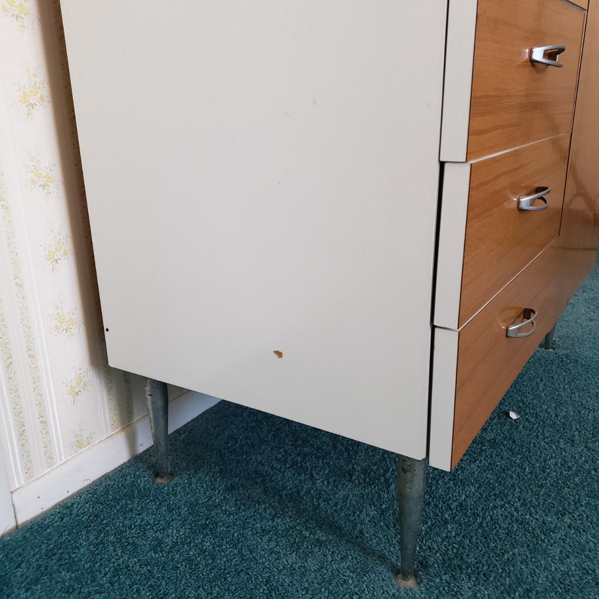 LOT 93: MCM Storage Cabinet with Drawers & Vintage Forecast Train Case