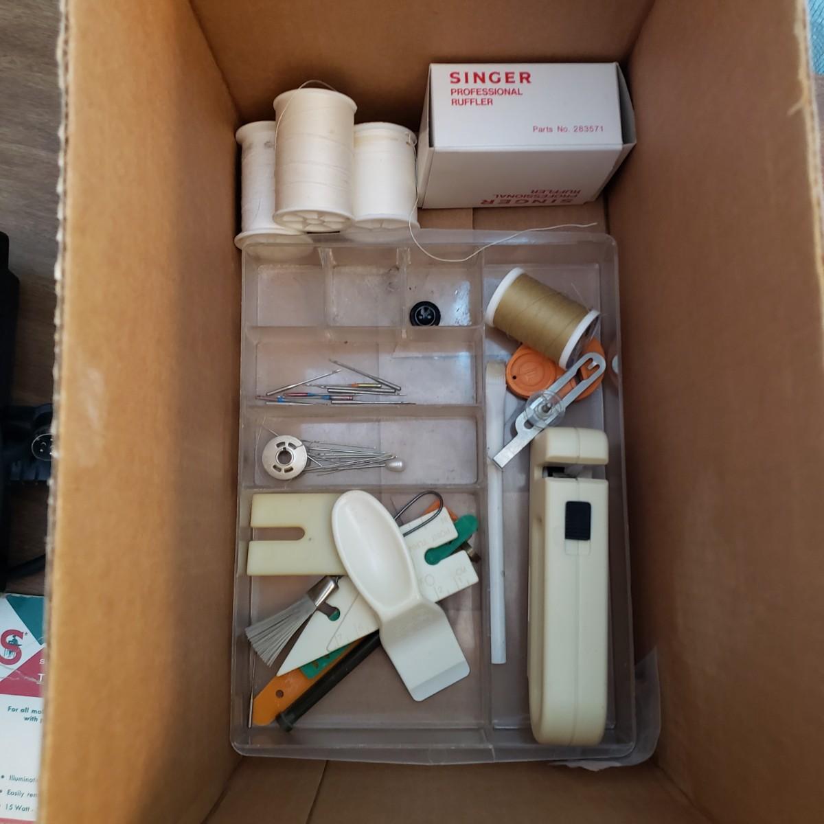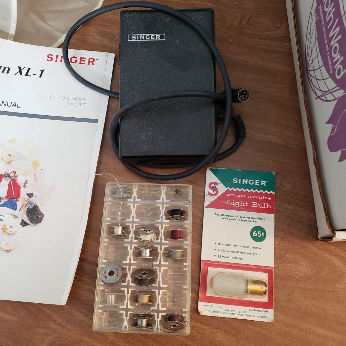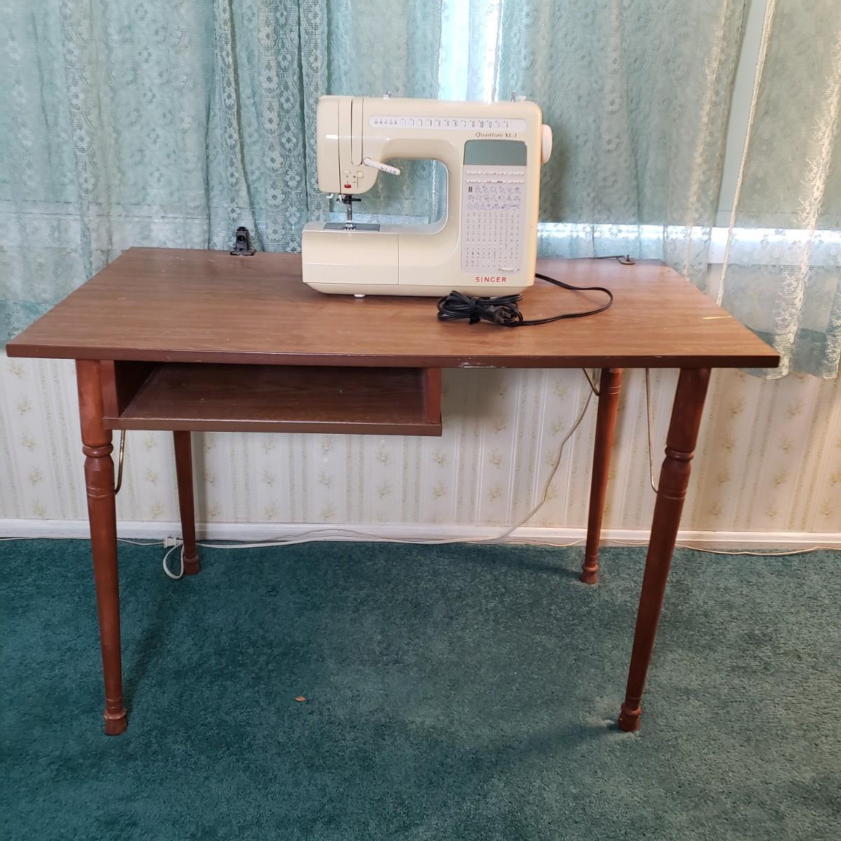 LOT 95: Vintage Sewing Table with Singer Quantum XL-1 Sewing Machine
