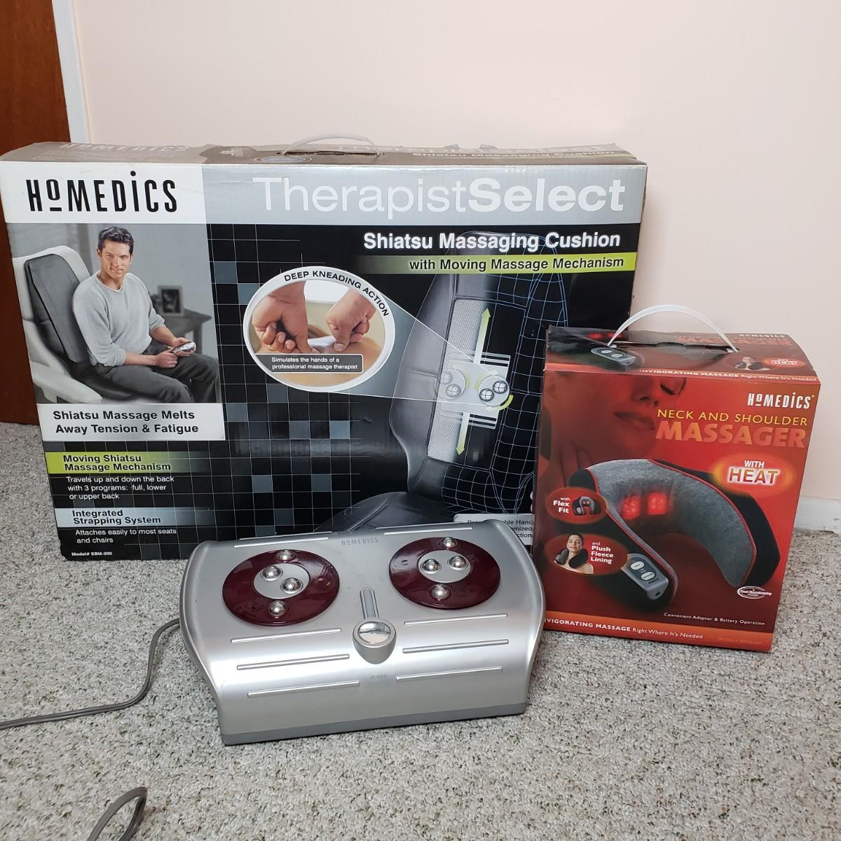LOT 103: Homedics Products-Shiatsu Massaging Cushion, Neck & Shoulder Massager, Foot Pleaser Foot Massager