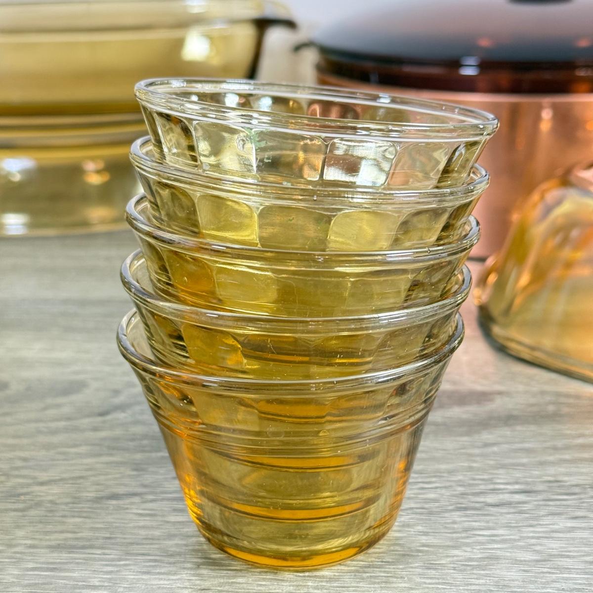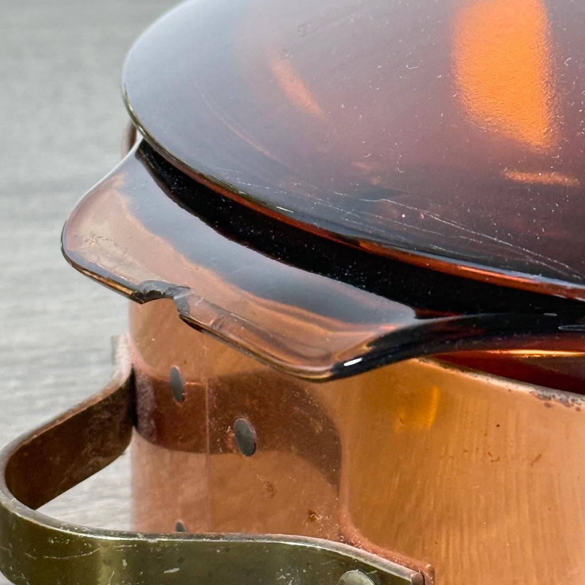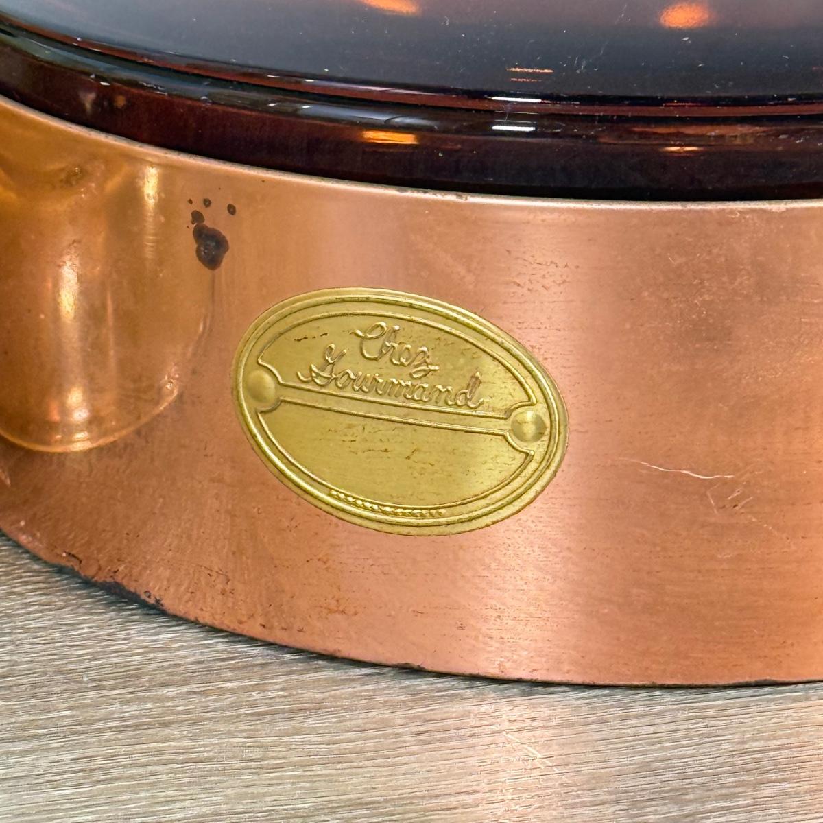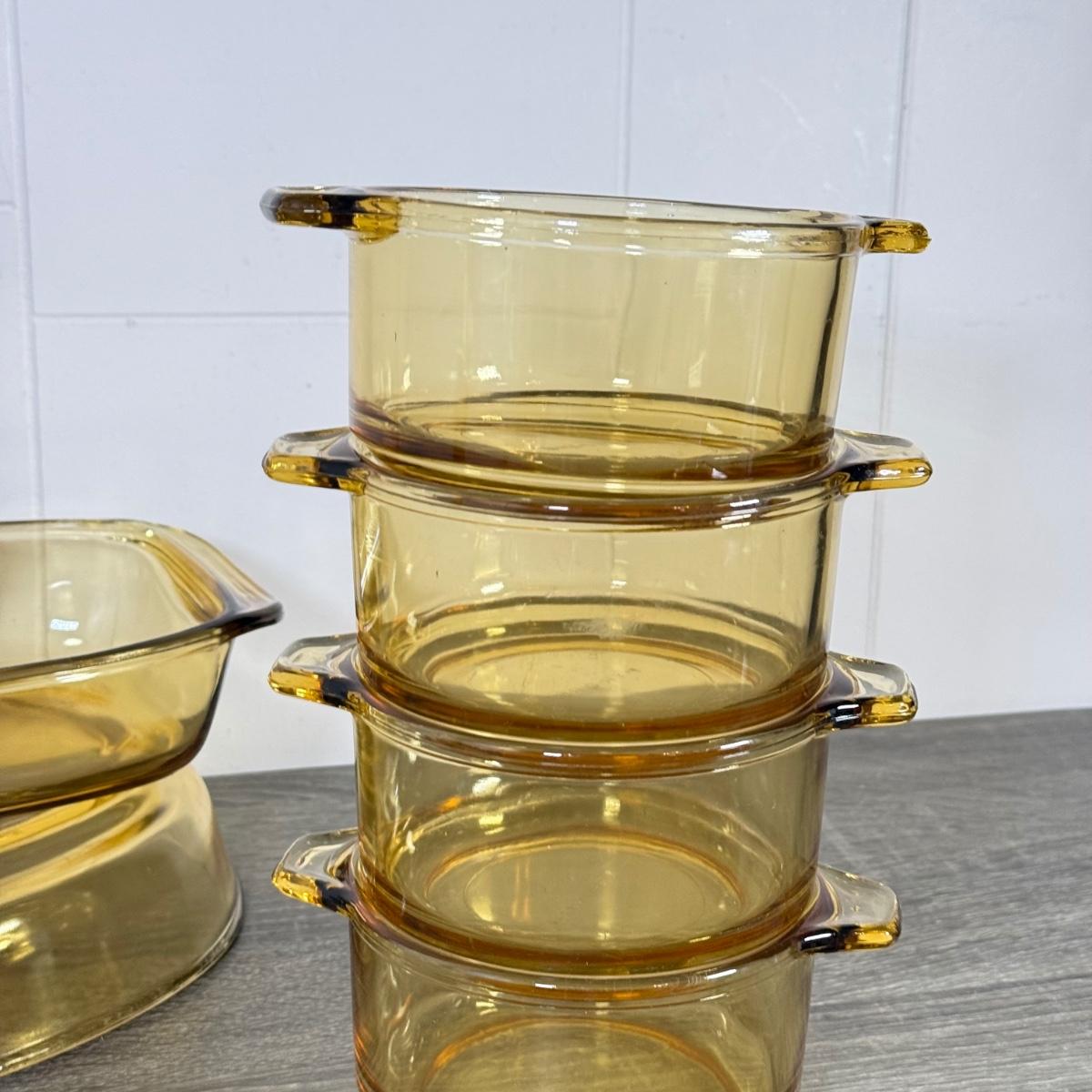 LOT 109K: Vaseline Yellow Pyrodry Glass Baking Dishes & Gregorian Copper Dish Holder