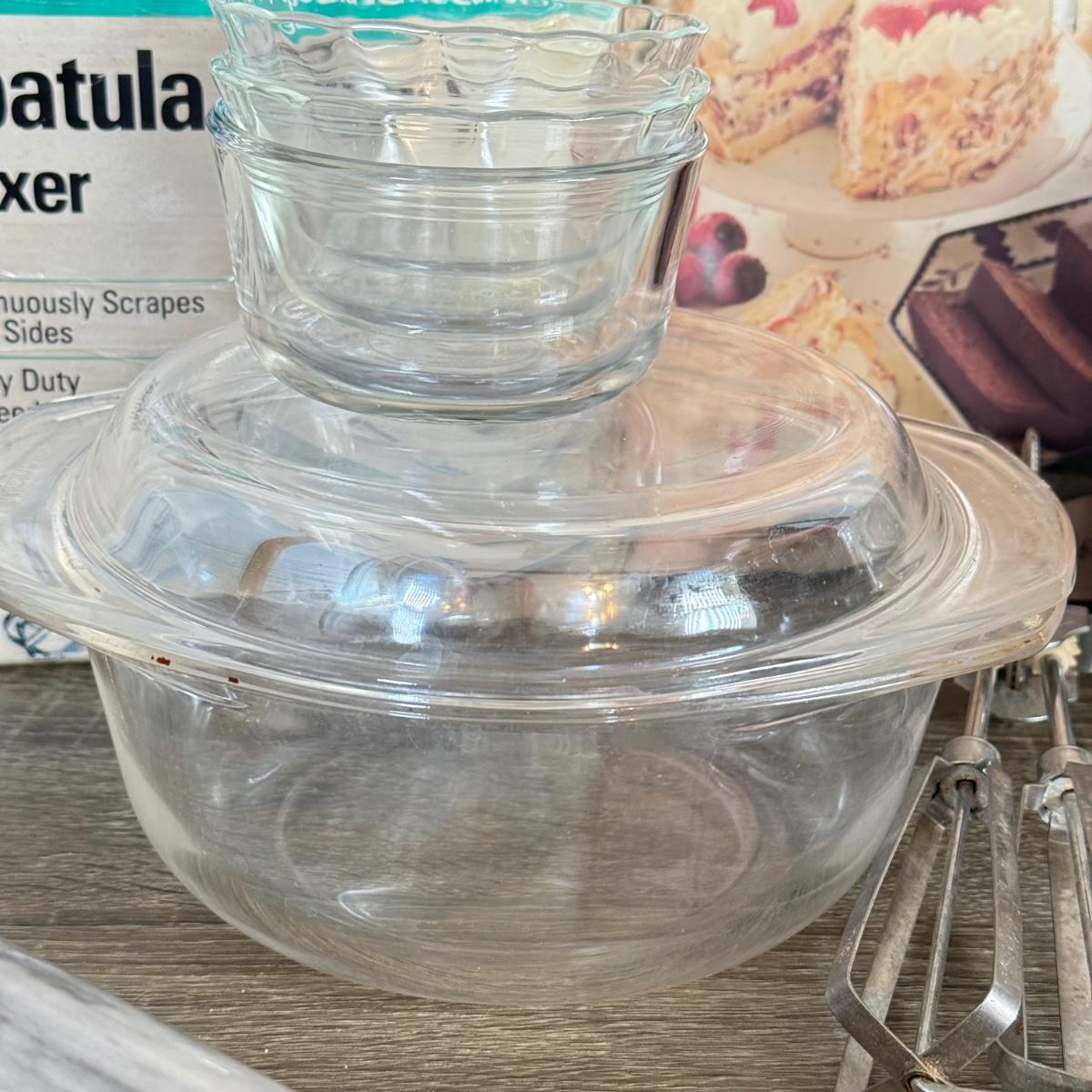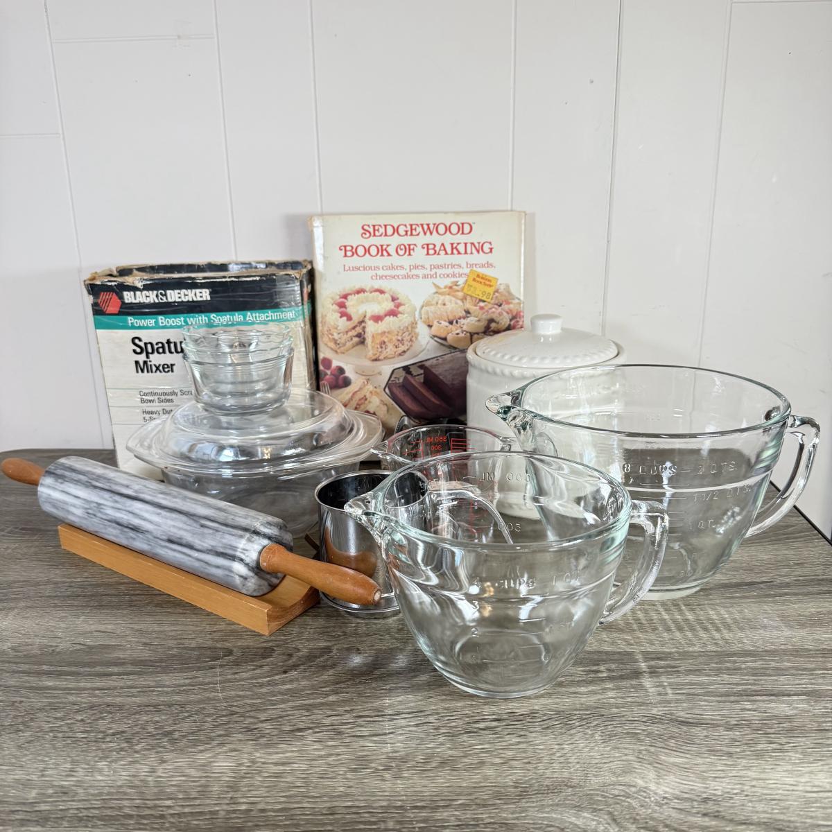 LOT 117K: Baking Collection: Pampered Chef Mixing Bowls, Harry&David Canister, 1983 Cook Book & More