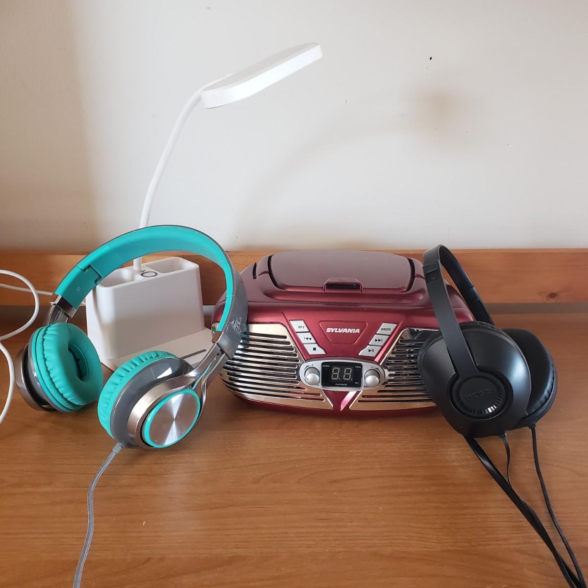 LOT 146: Retro Style CD Player, Headphones by Koss & Artix, Desk Lamp