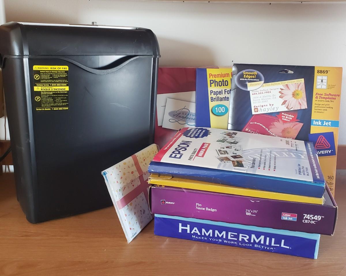 LOT 151: Amazon Paper Shredder with Assortment of Paper for Photos & Business