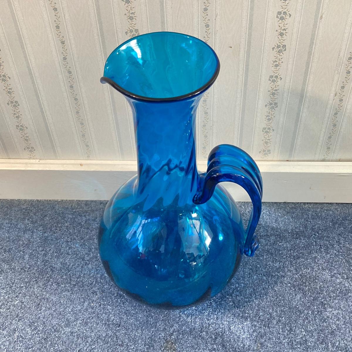LOT 164L: Beautiful Blue Art Glass Pitcher