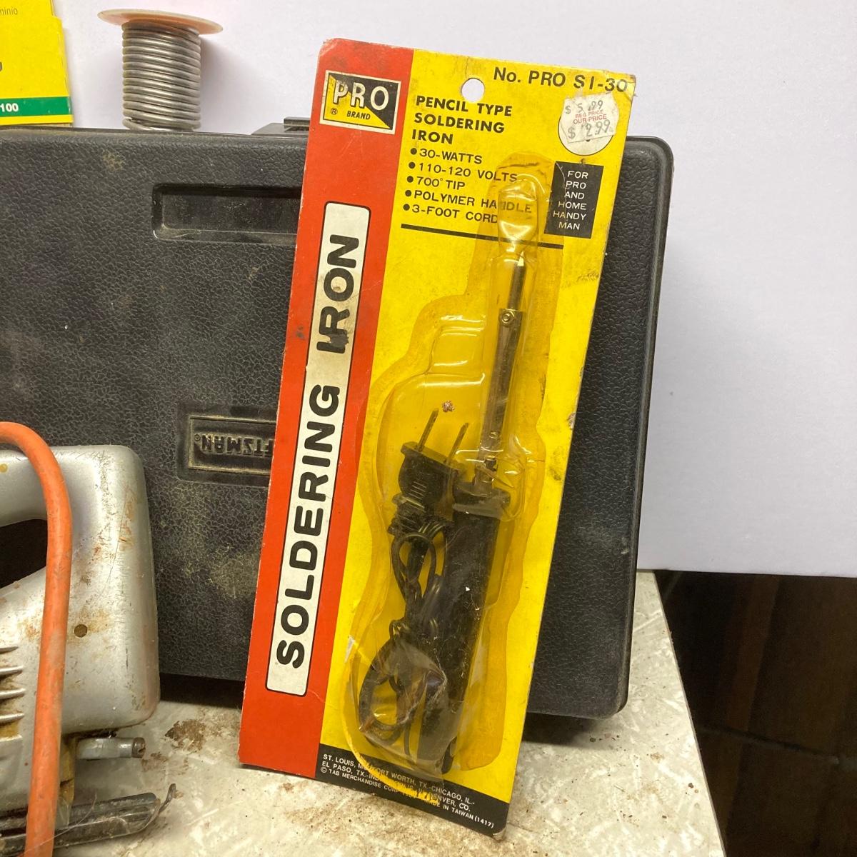 LOT 170G: Tools and More - Craftsman Sander / Soldering Gun, Black & Decker Jigsaw, Emerson Portable Air Compressor and More