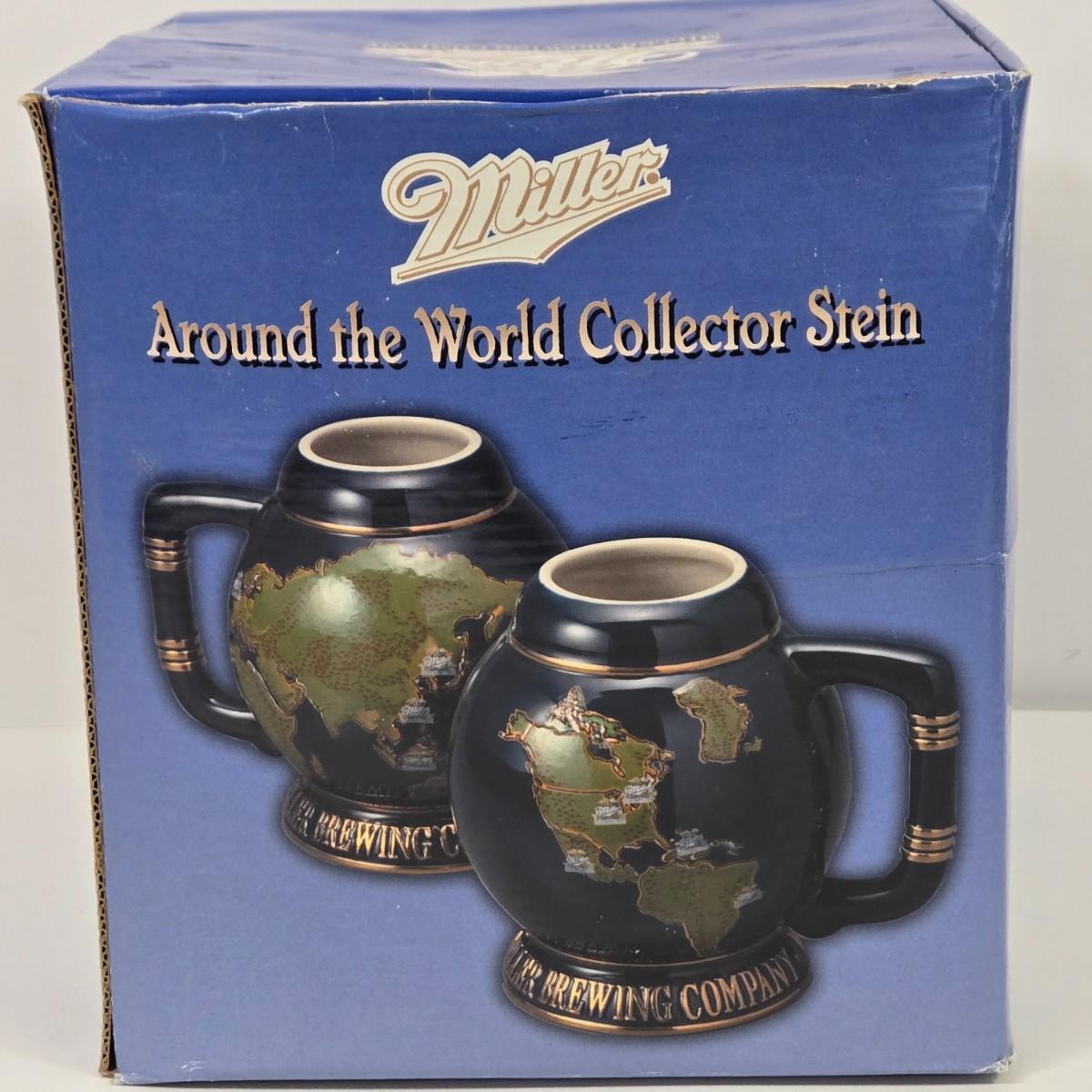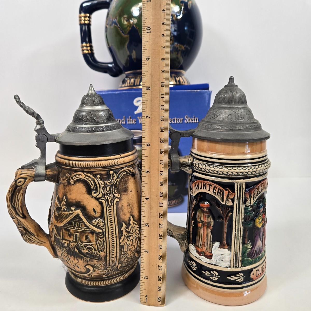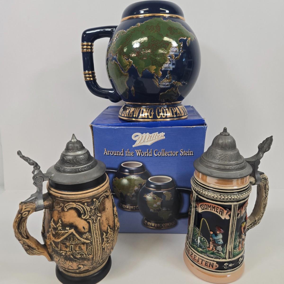 LOT 13: Miller Brewing Around The World Collector Stein and 2 Vintage German Beer Steins with Pewter Lids