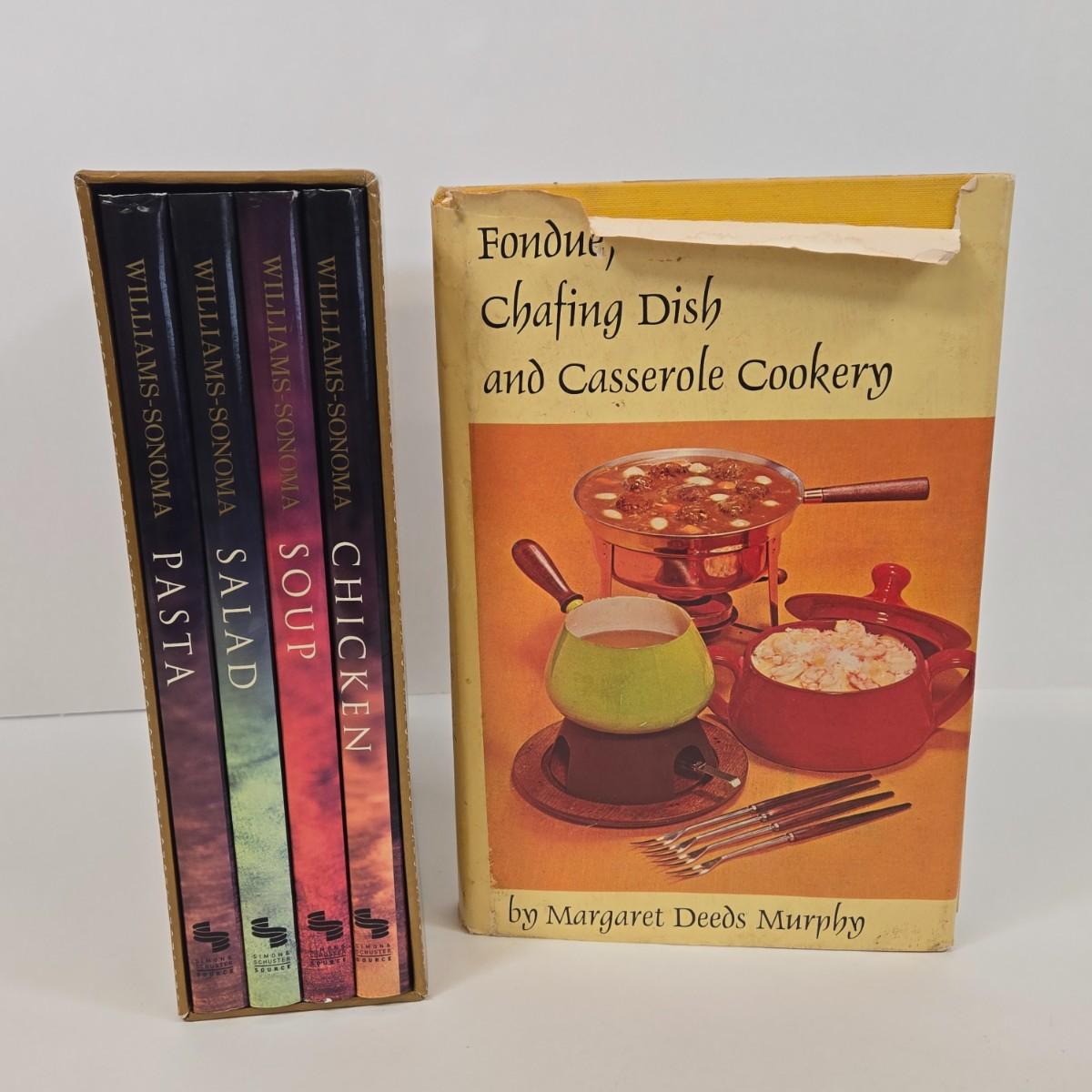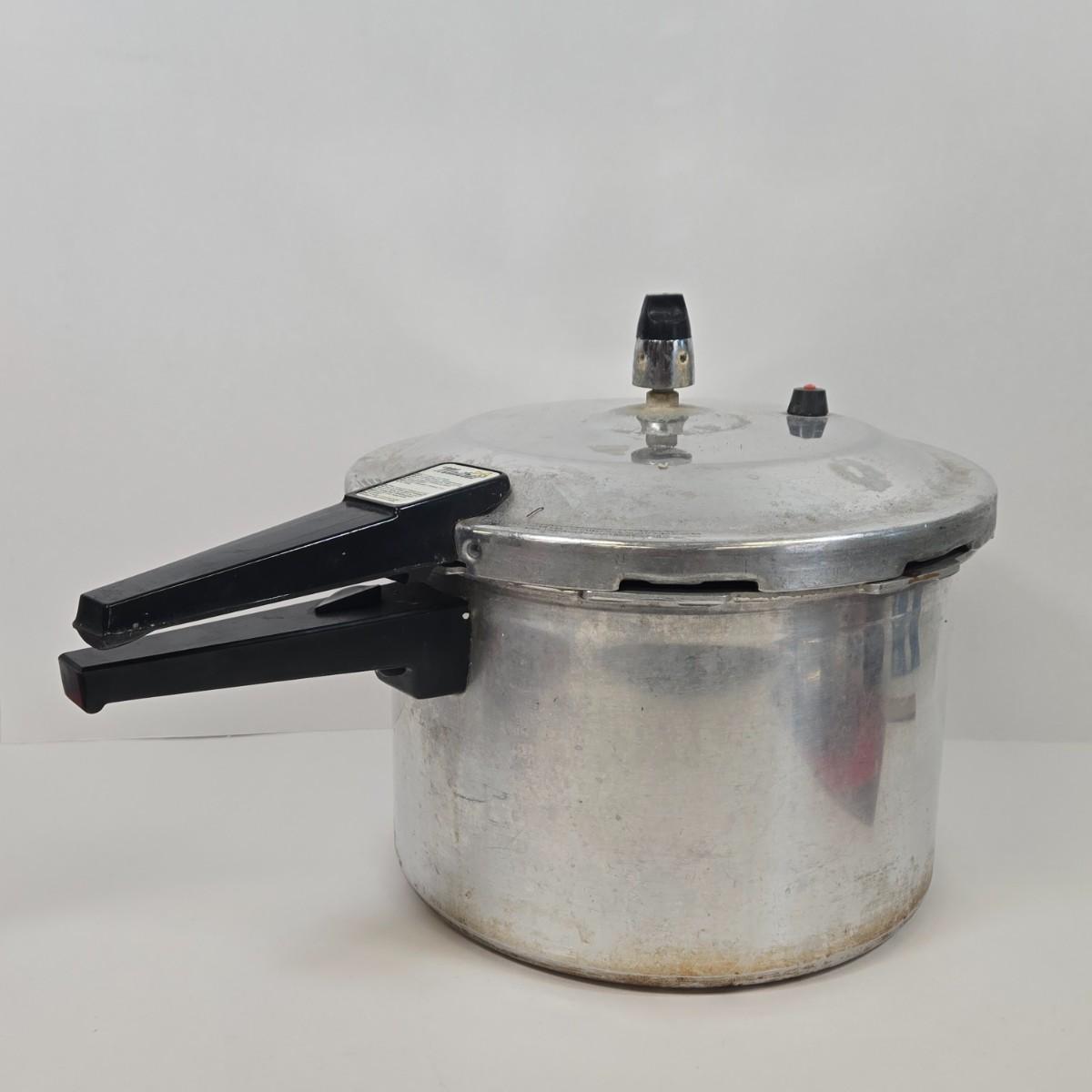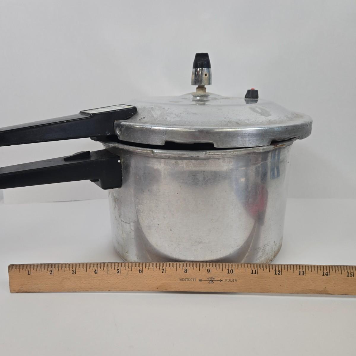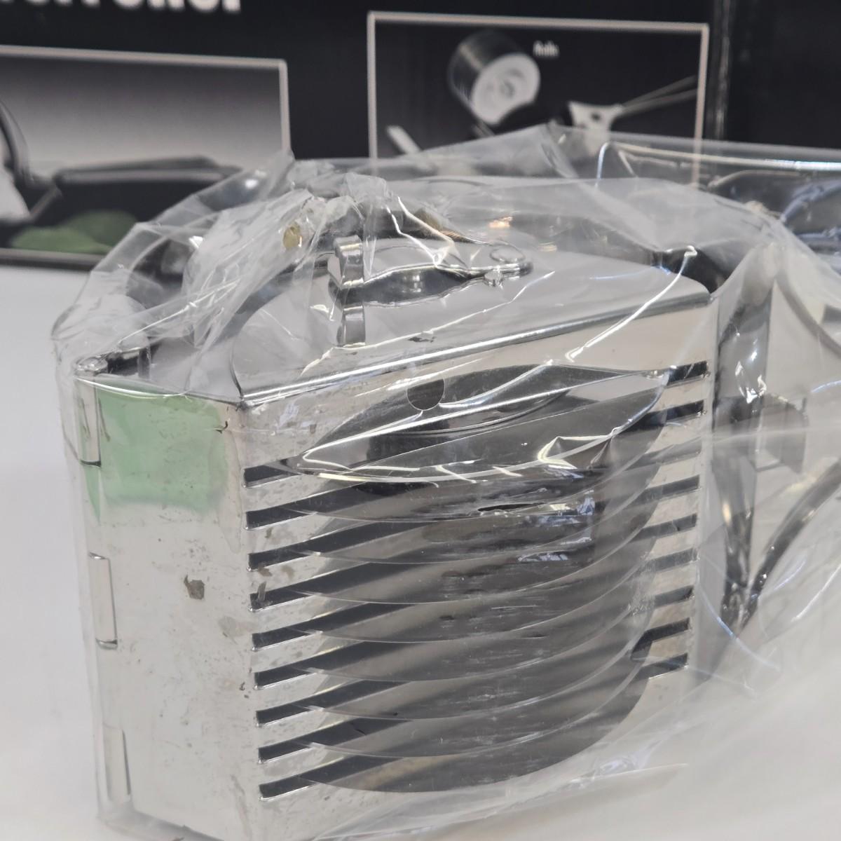LOT 15: Cookbooks, Vintage 1984 Action’s MIRACLE SLICER, Küchenprofi Stainless Steel Herb Cutter, Ursula Rosette Irons & Tart Master, and Maitre’s Pressure Cooker