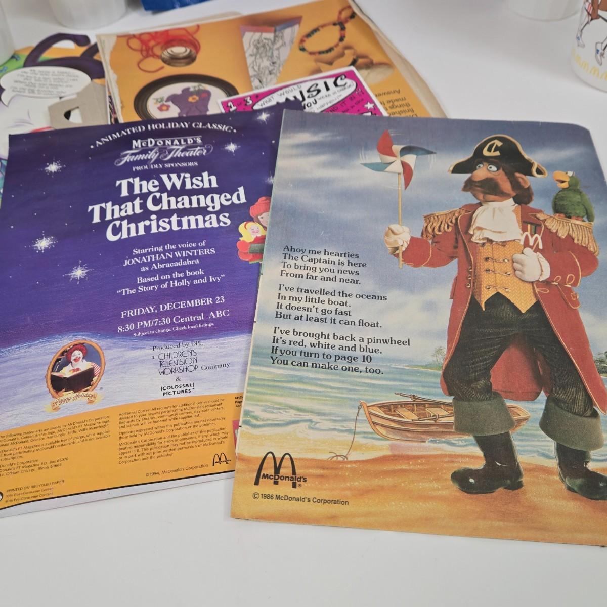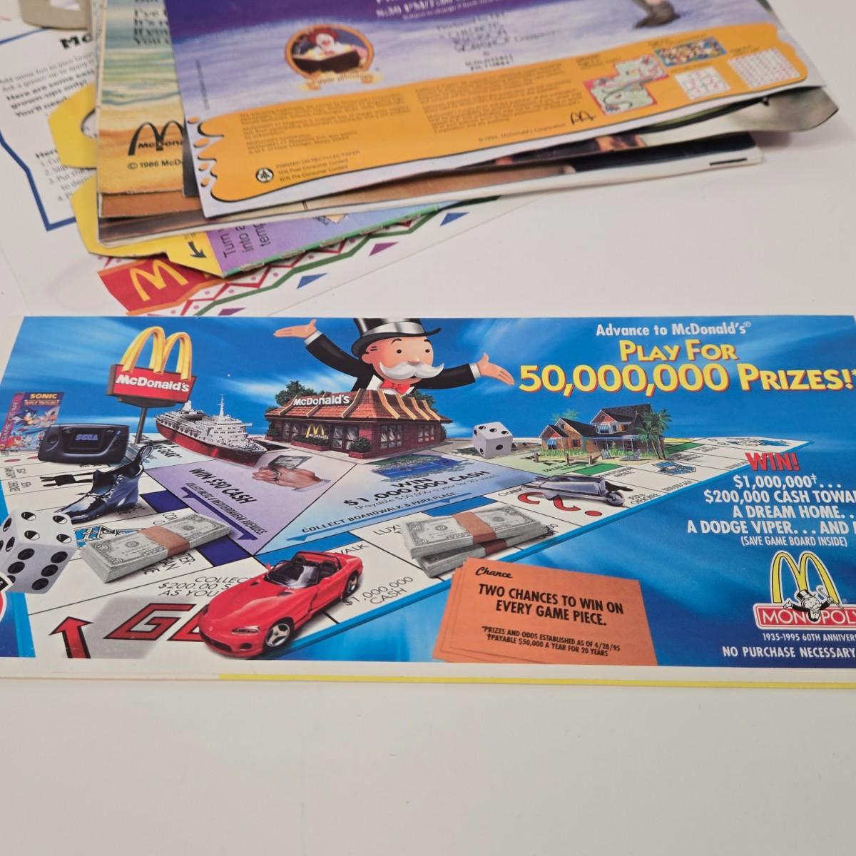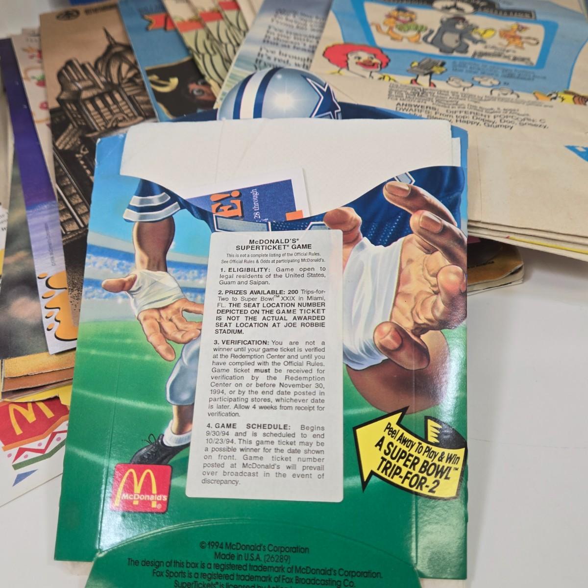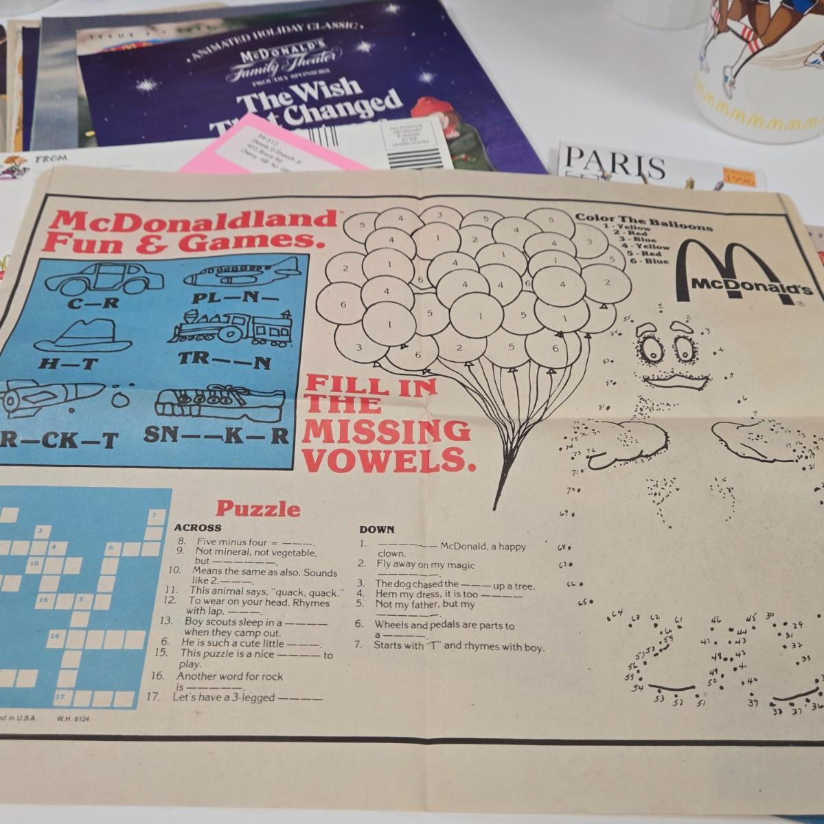 LOT 37: Vintage McDonald's Items Including Happy Meal Bags, Placemats, Bib, Plastic Utensils, Cups, and Much More