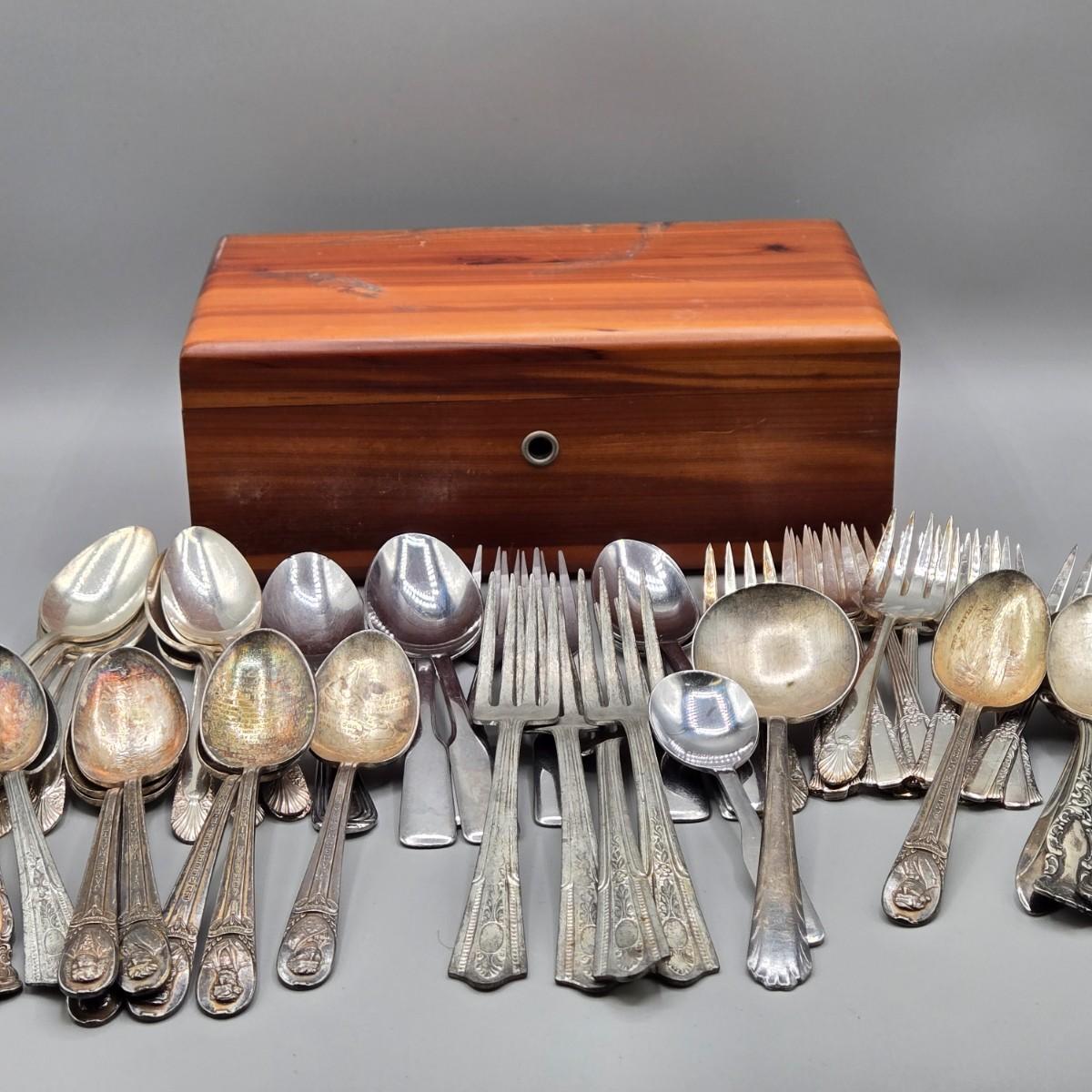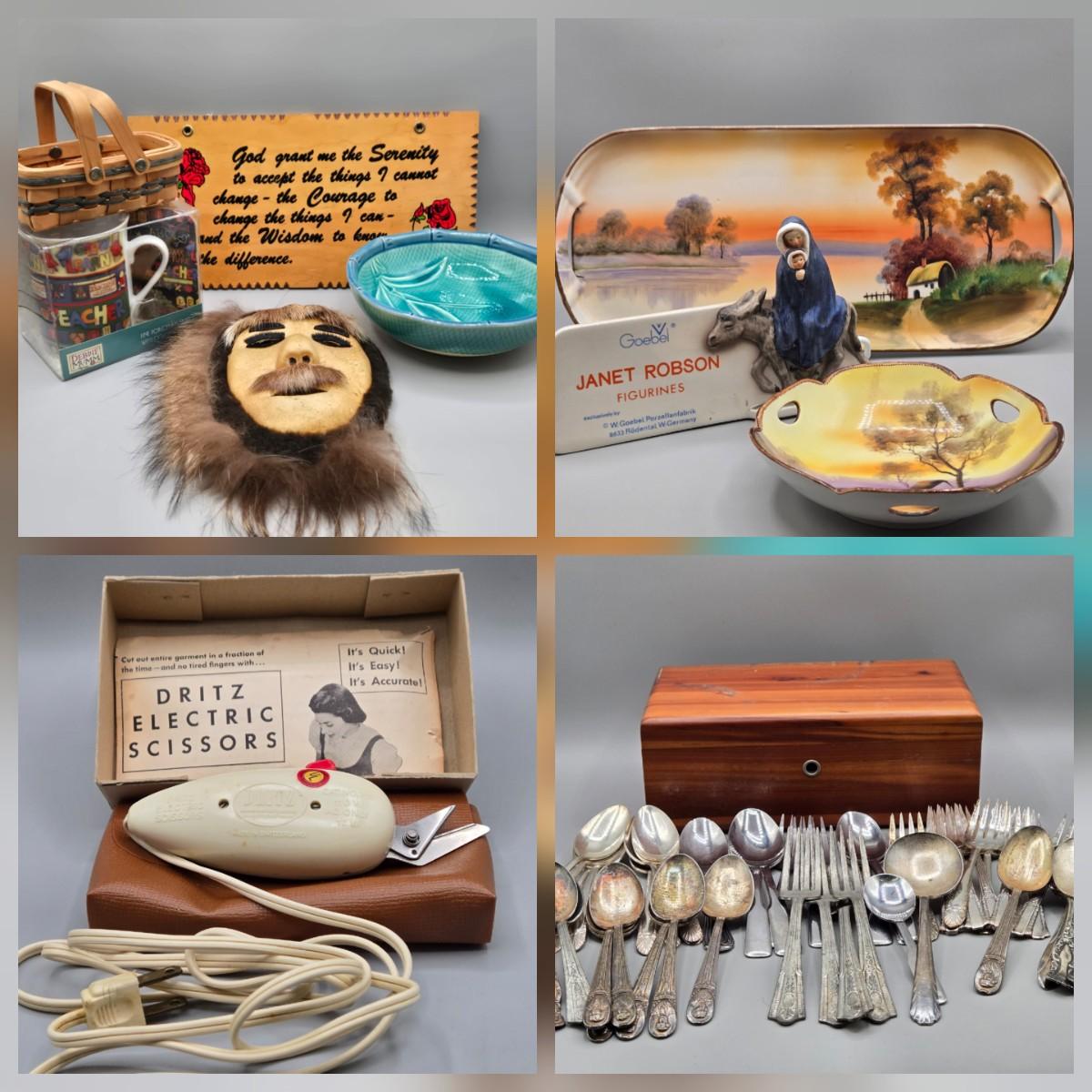 LOT 65: Vintage Dritz Model 716 Electric Scissors, Multiple Pieces of Flatware, Hand-Painted Noritake Porcelain Handled Bowl, and More